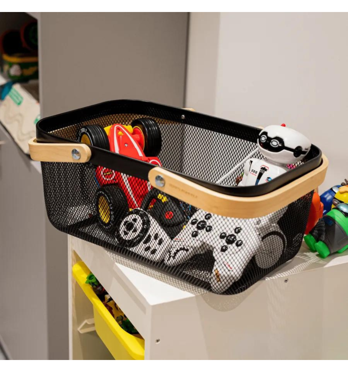 A Cesta / Fruteira Preta de Metal com Alça de Madeira - (G) RETANGULAR é perfeita para adicionar um toque de estilo e praticidade à sua cozinha, sala ou área de serviço. Sua estrutura metálica é robusta e confiável, enquanto a alça de madeira proporciona um contraste elegante.