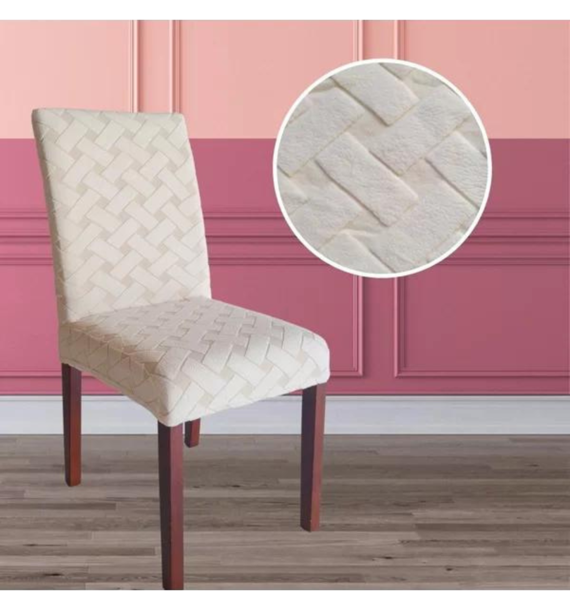Apresentamos a Capa de Cadeira Creme, a solução perfeita para dar uma nova vida às suas cadeiras de forma prática e elegante. Feita com tecido de alta qualidade e design trançado exclusivo, essa capa vai transformar sua decoração em um piscar de olhos.