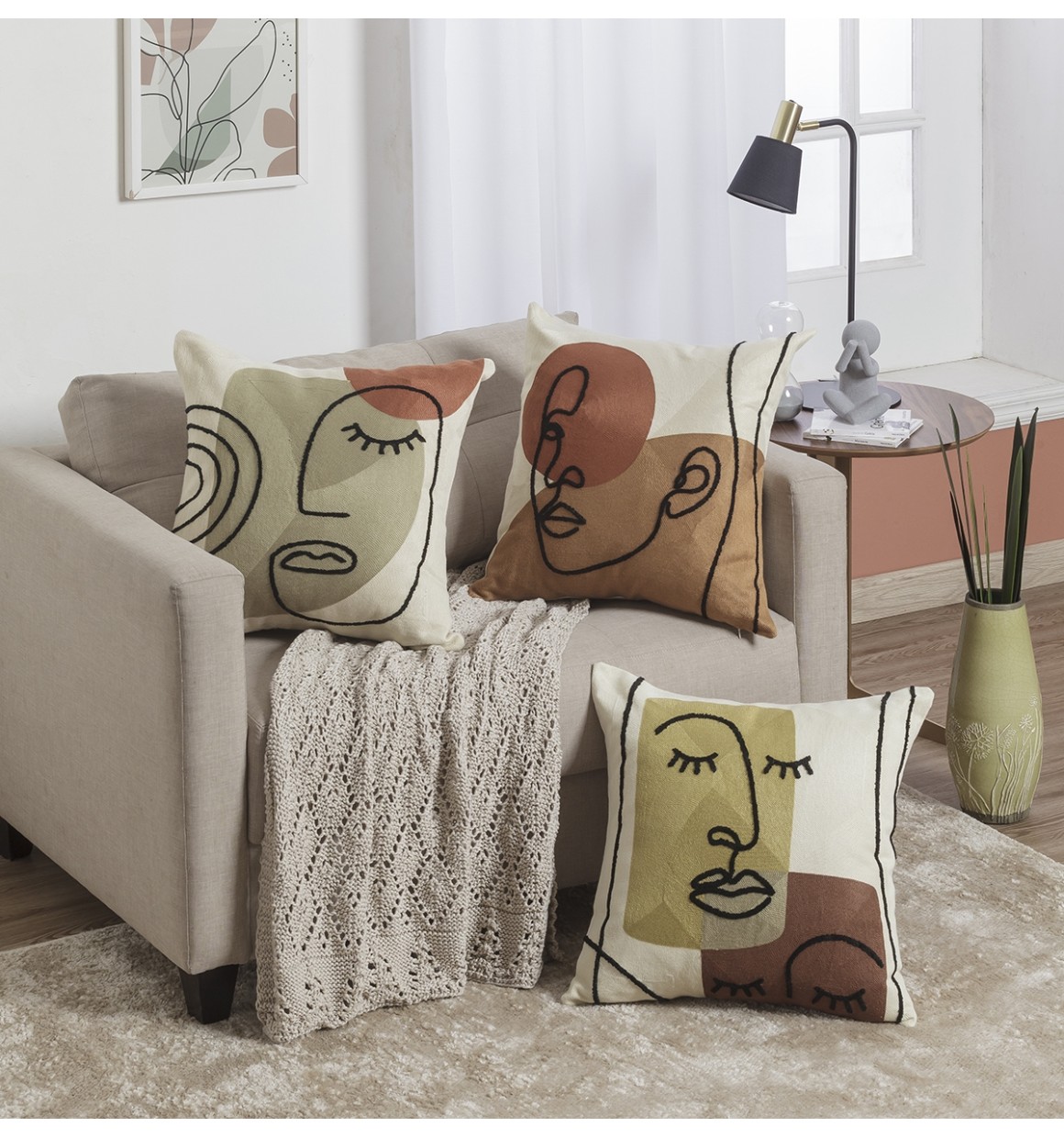 Esta capa de almofada apresenta um design elegante e contemporâneo, com detalhes bordados que trazem um toque de personalidade ao ambiente.