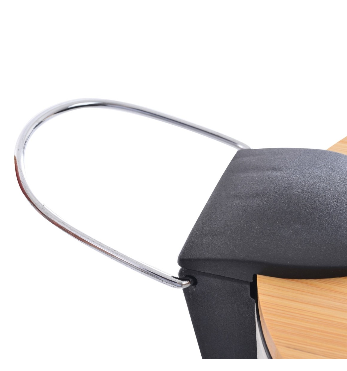 Com um design clean e funcional, esta lixeira possui uma tampa de bambu que não apenas confere um toque natural e estético, mas também evita odores indesejados.