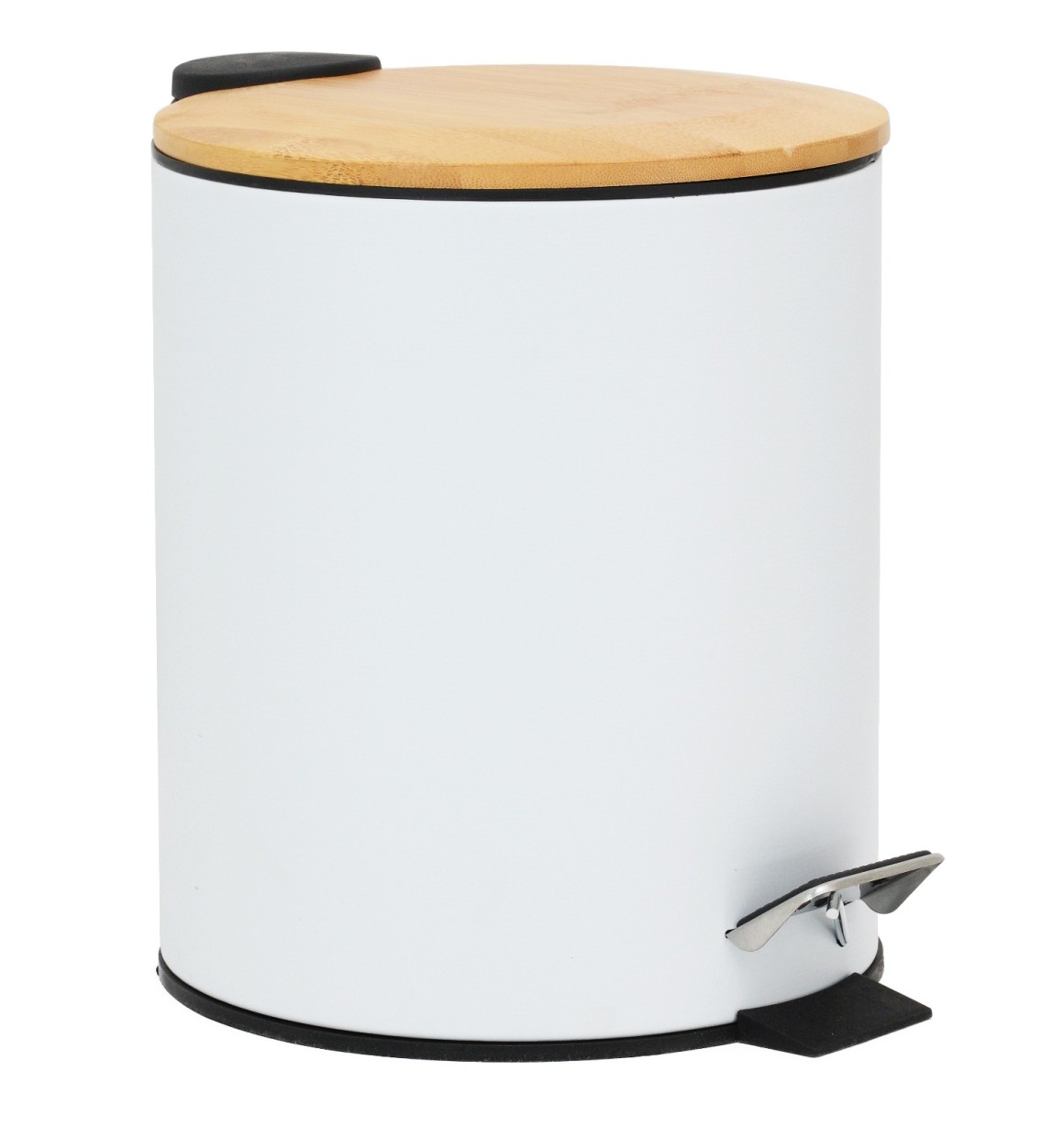 Lixeira 5L Branca com Tampa de Bambu com Pedal Lisa