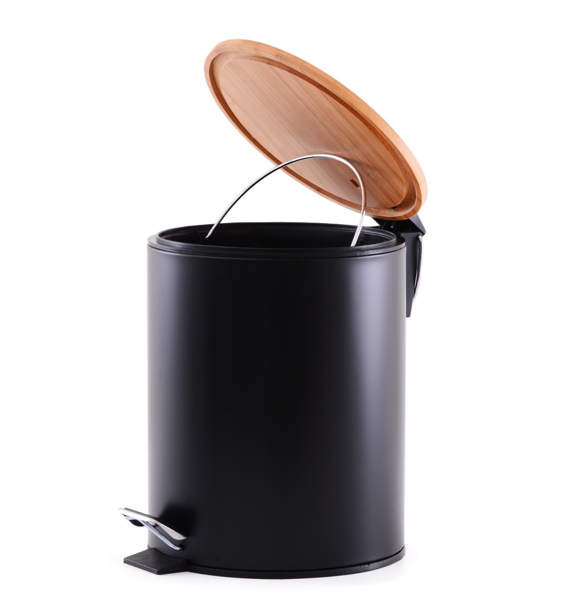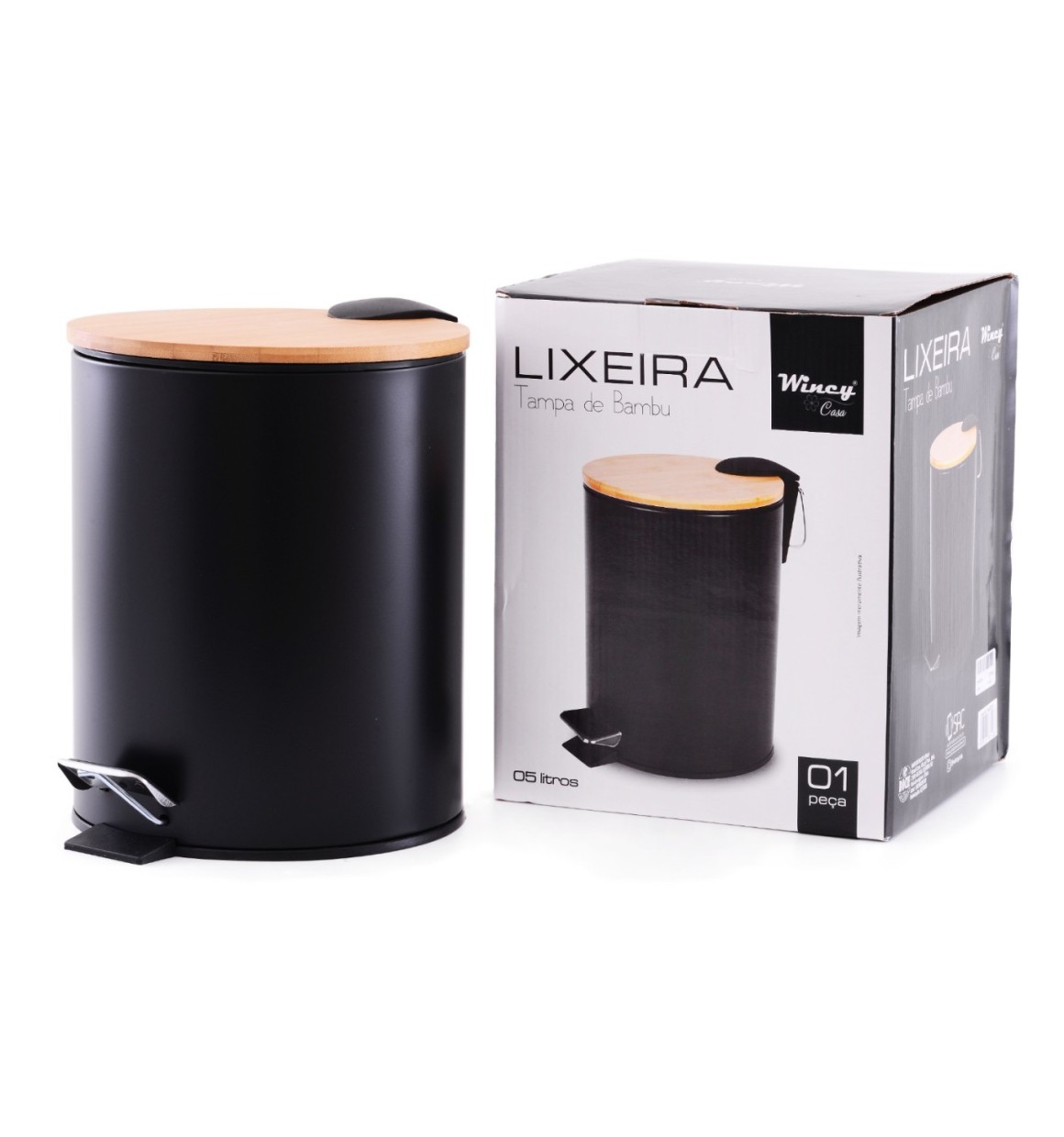 Mantenha seu ambiente organizado e elegante com a Lixeira 5L Preta com Tampa de Bambu e Pedal, uma adição prática e estilosa à sua rotina.