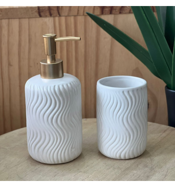 Kit de Banheiro Branco com Tampa Dourada - 2 Peças (450ml)