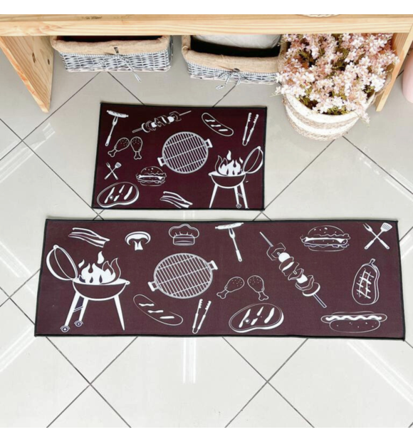 Medidas: Passadeira - 40cm x 120cm, Tapete - 60cm x 40cm.