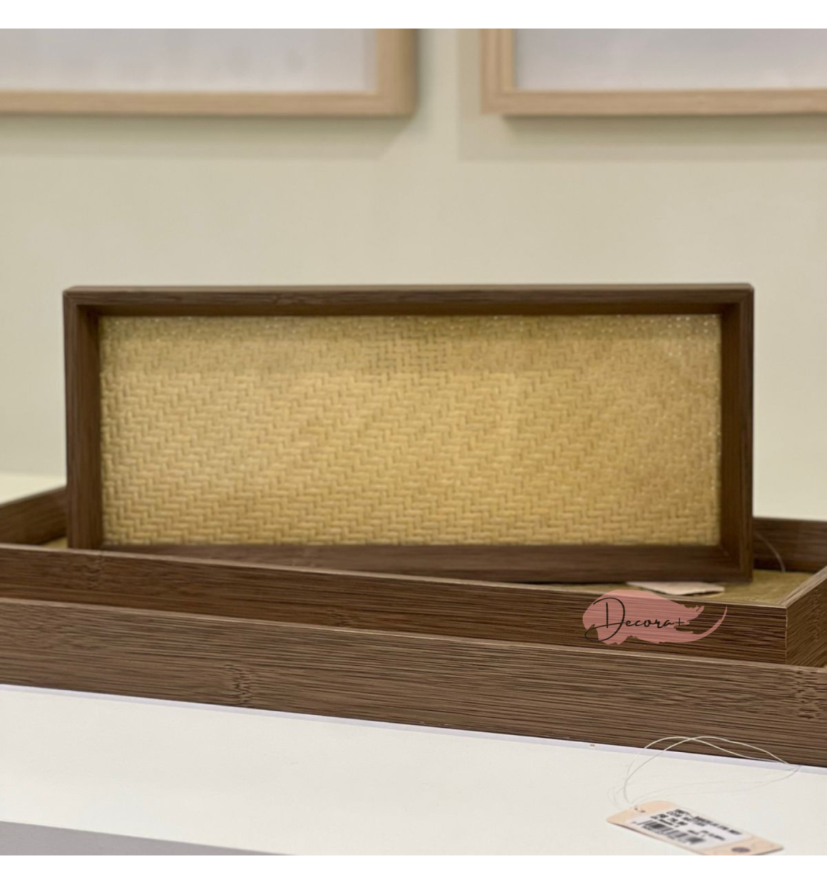 2. Bandeja Retangular em MDF com Rattan 28cm