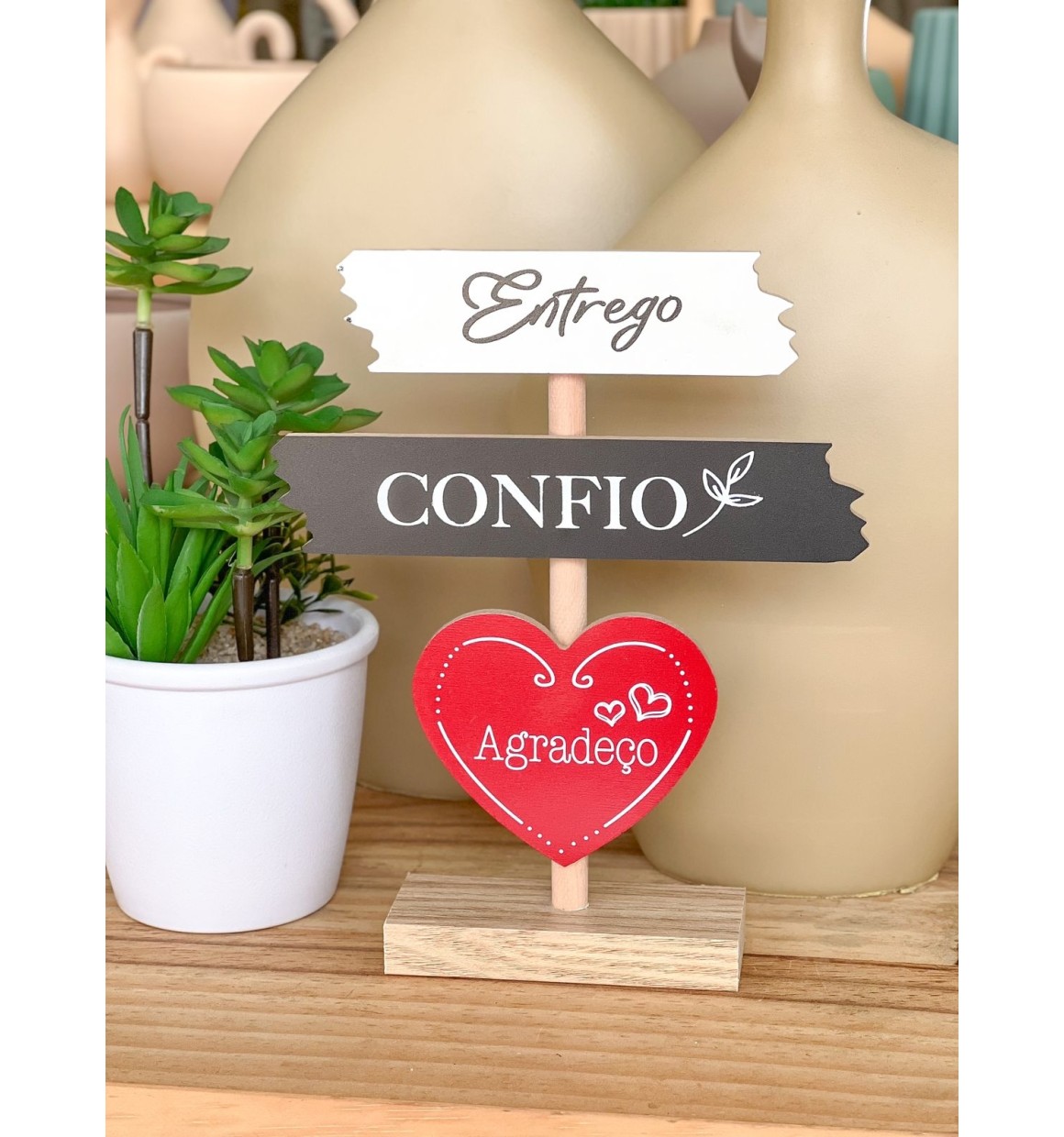 Enfeite Decorativo de Madeira "Entrego, Confio e Agradeço"