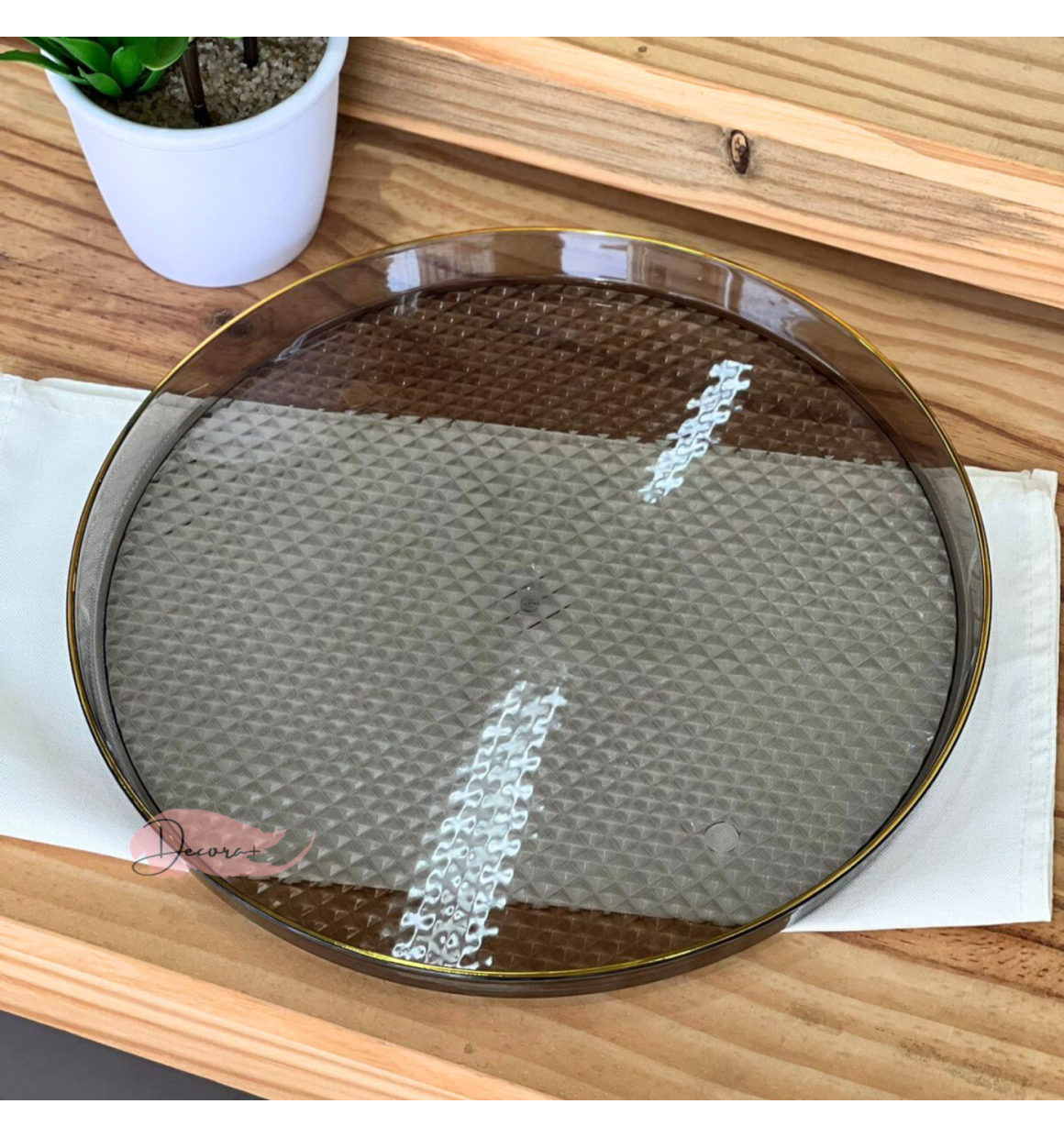 Bandeja Fumê Redondacom borda Dourada - (G)
