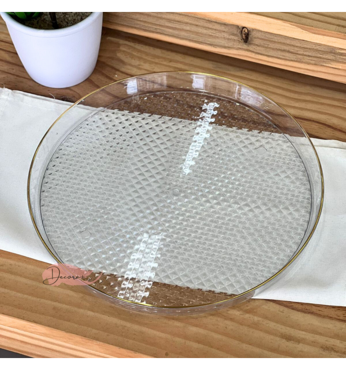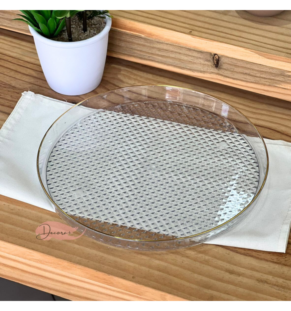 Bandeja Transparente Redonda com borda Dourada - (P)