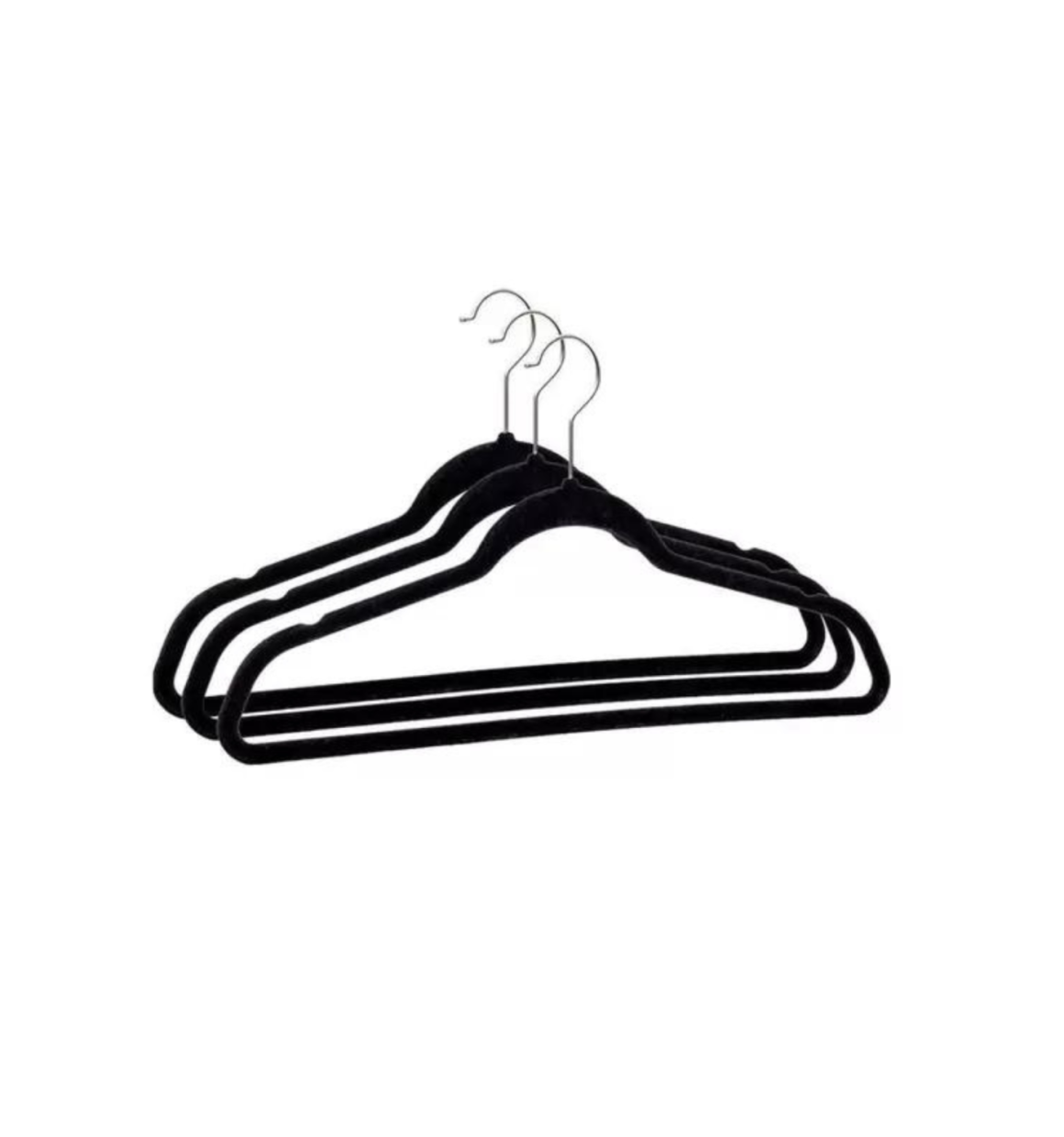 Mantenha seu guarda-roupa organizado e suas roupas impecáveis com o Kit de Cabides Preto com Revestimento de Veludo. Este conjunto de cabides elegantes e duráveis é projetado para manter suas roupas no lugar, evitando vincos. Com o revestimento de veludo, suas roupas permanecerão intactas.