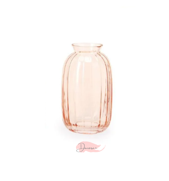 Vaso de Vidro Canelado - Rosa 12cm X 6cm