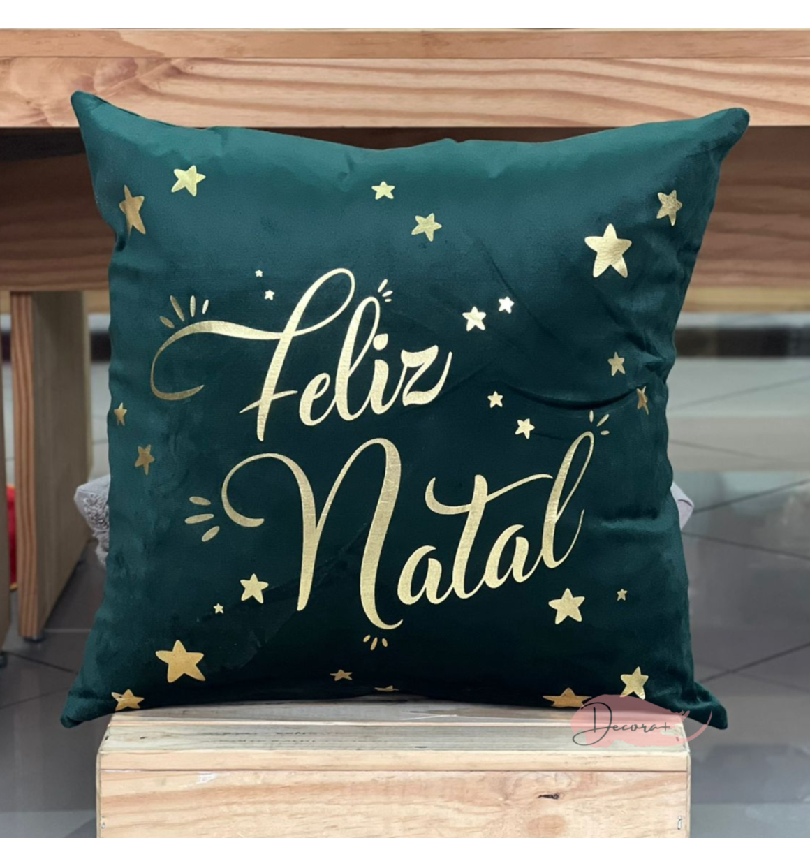 Capa de Almofada Verde "Feliz Natal" 43cm X 43cm