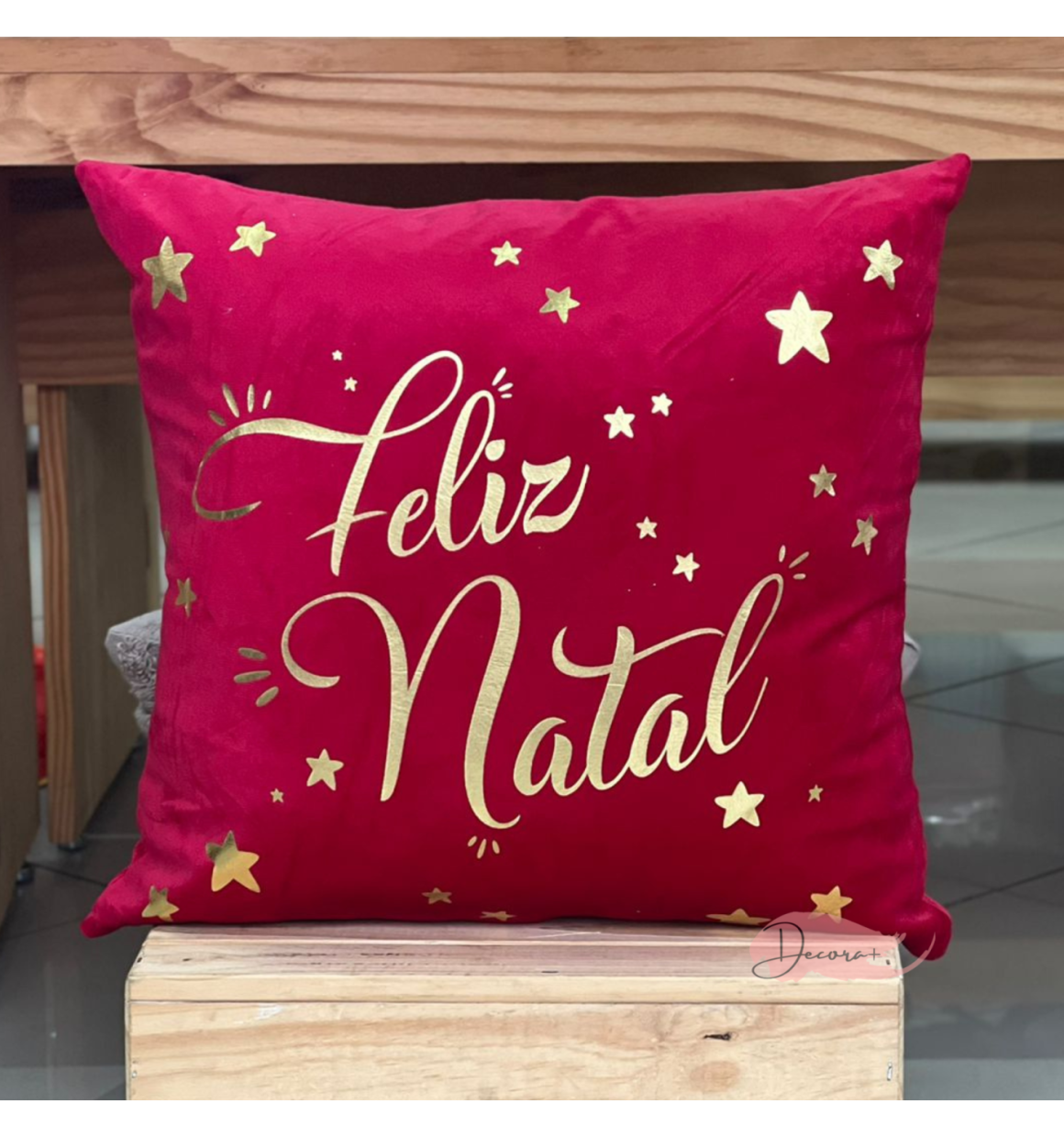 Capa de Almofada Vermelha "Feliz Natal" 43cm X 43cm