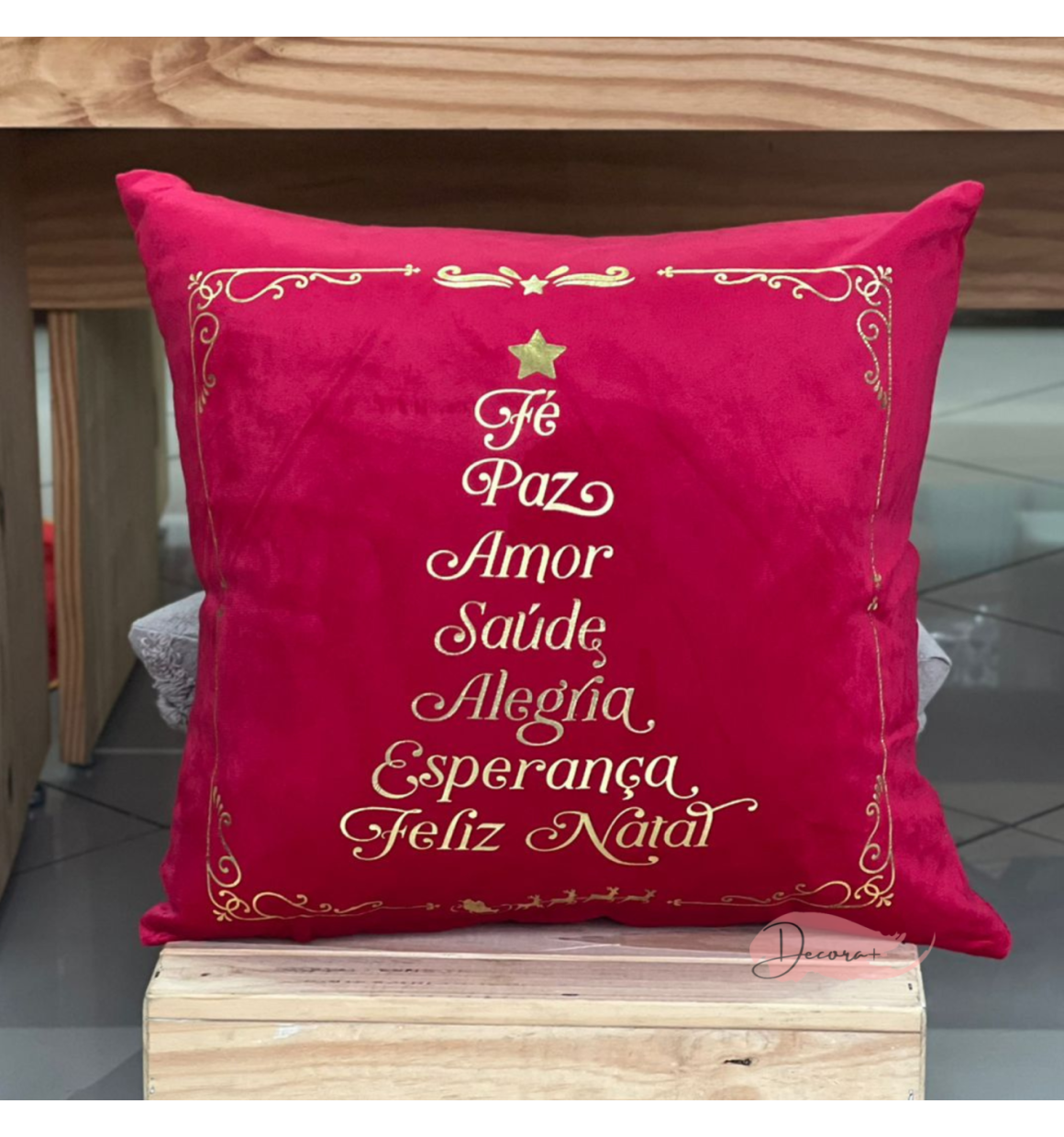 Deixe a mensagem do Natal abraçar sua casa com a Capa de Almofada Vermelha Natalina. Com as palavras "Fé, Paz, Amor, Saúde, Alegria, Esperança, Feliz Natal" estampadas em dourado vibrante, esta capa não é apenas uma peça decorativa, é uma declaração de valores natalinos. Adicione um toque especial e significativo à sua decoração.