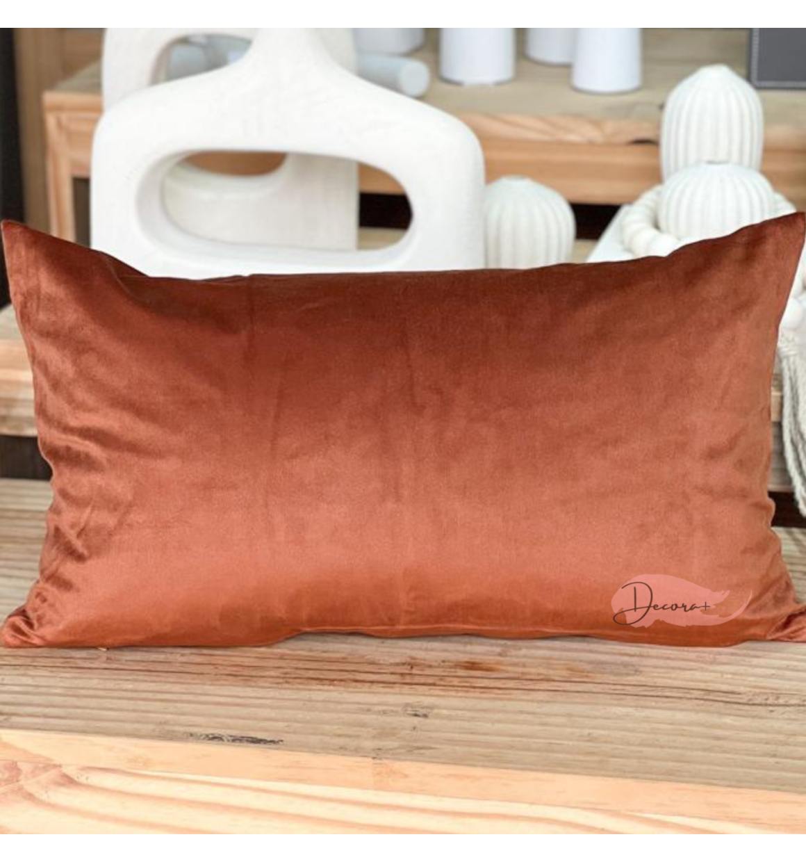 Capa de almofada retangular com zíper, em tecido veludo.