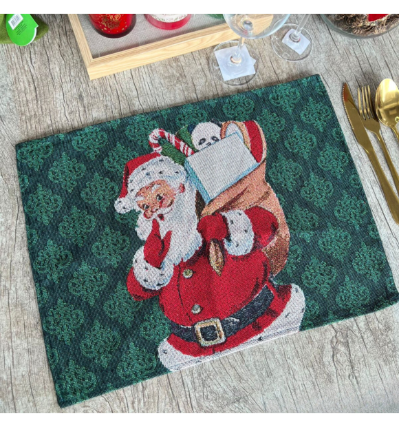 Jogo Americano de Tecido - Papai Noel com Saco de Presente Verde 33cm X 45cm