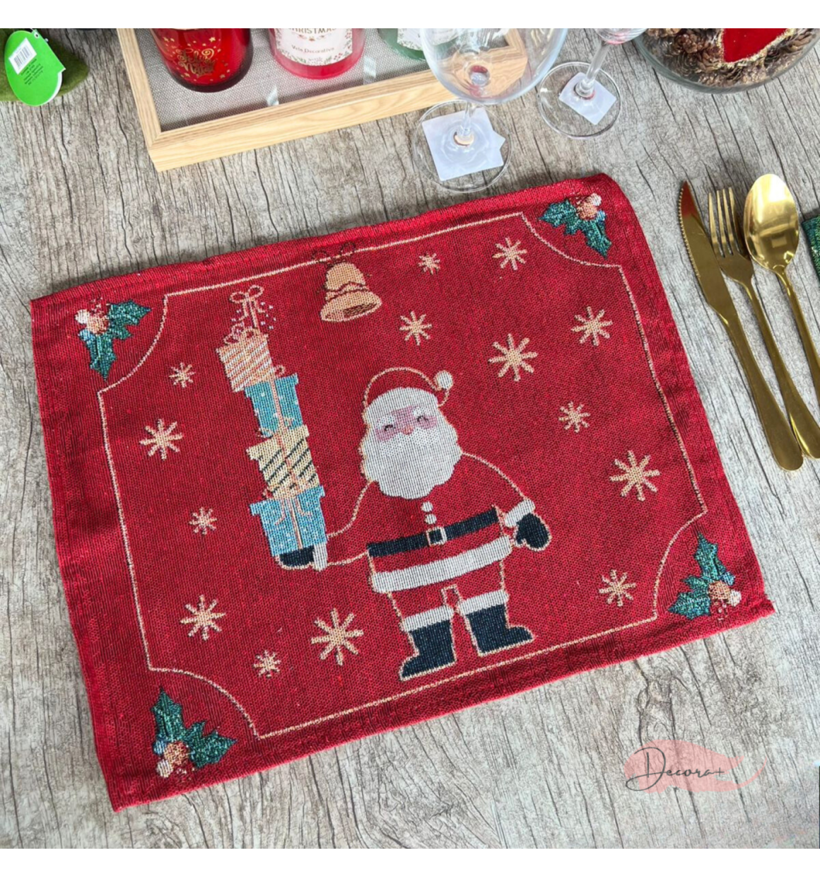 Transforme cada refeição em uma celebração festiva com nosso encantador Jogo Americano de Natal em tecido vermelho. A estampa do Papai Noel, rodeado de presentes empilhados, traz a alegria e a magia da temporada para a sua mesa.