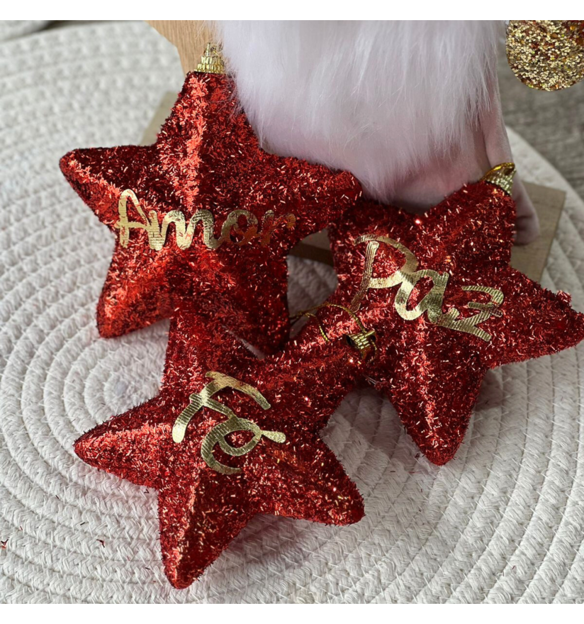 Celebre o espírito natalino com nossa Estrela Vermelha "Paz" de 12cm. Pendure-a na árvore ou decore qualquer espaço com esta mensagem de carinho que ilumina não apenas o ambiente, mas também os corações.