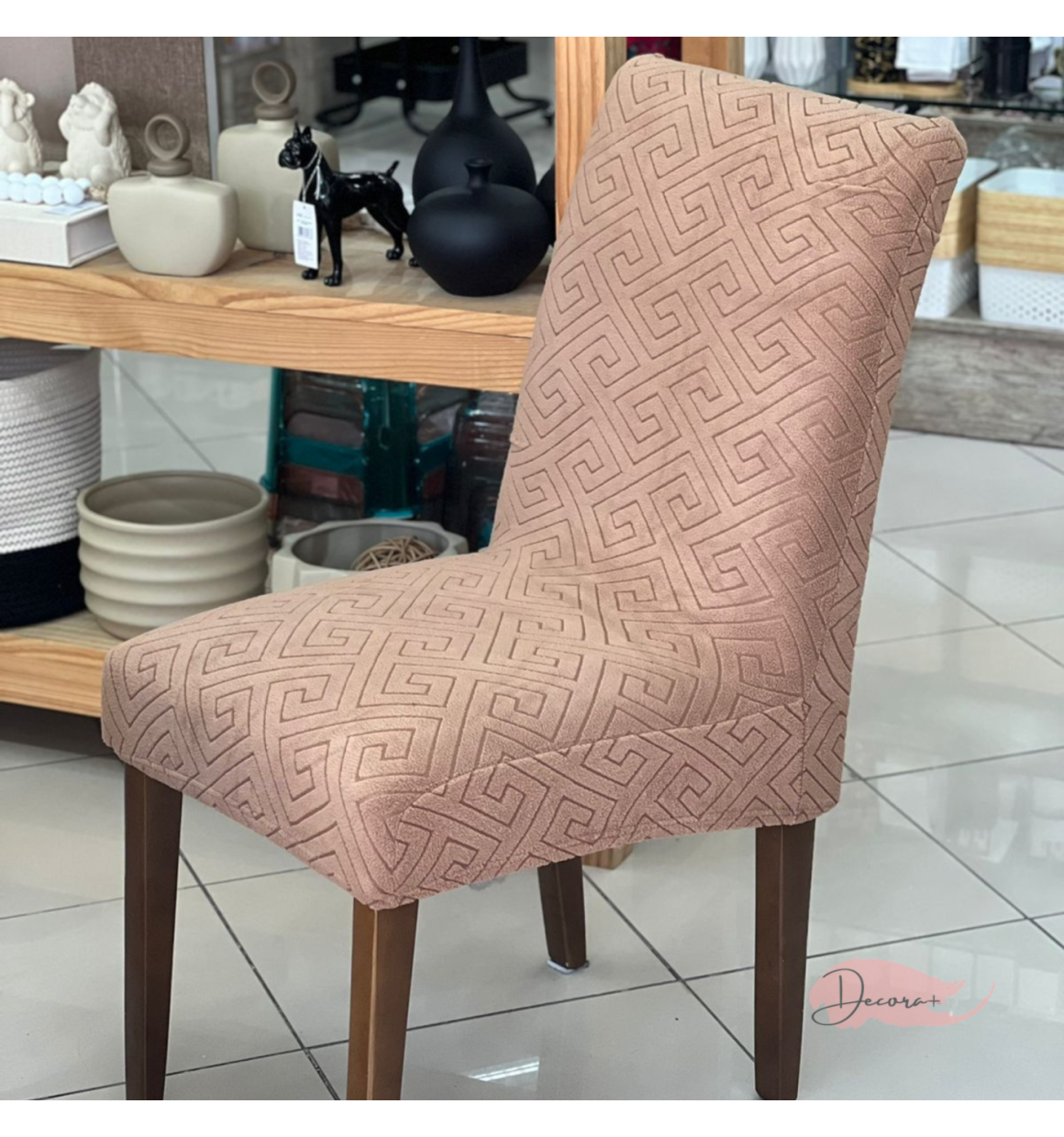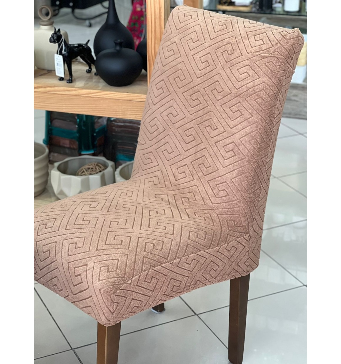 Capa de Cadeira Geométrica Marrom em Poliéster - 40cmX50cm / 45cmX65cm
