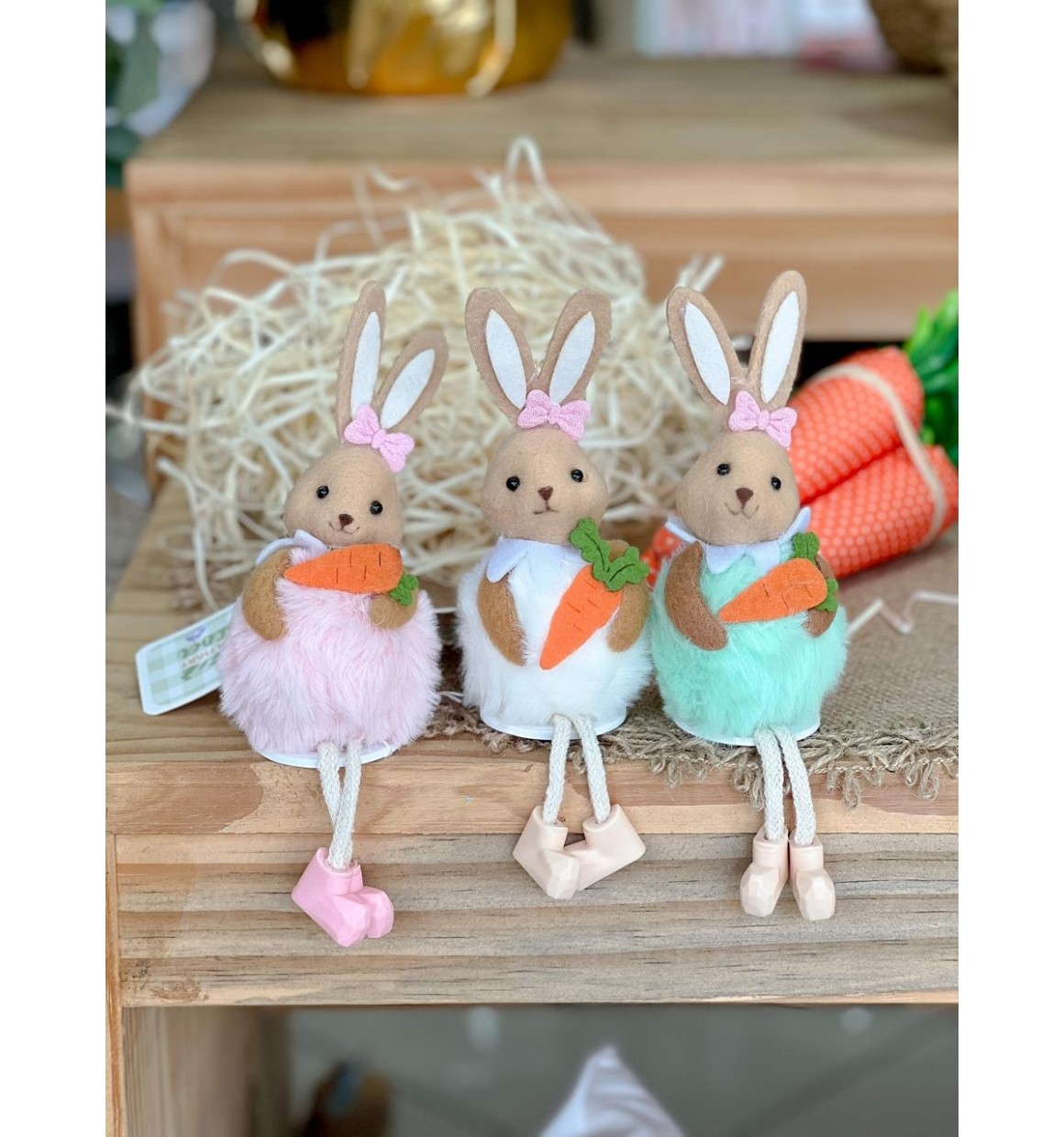 Enfeite Coelha Verde com perna articulada