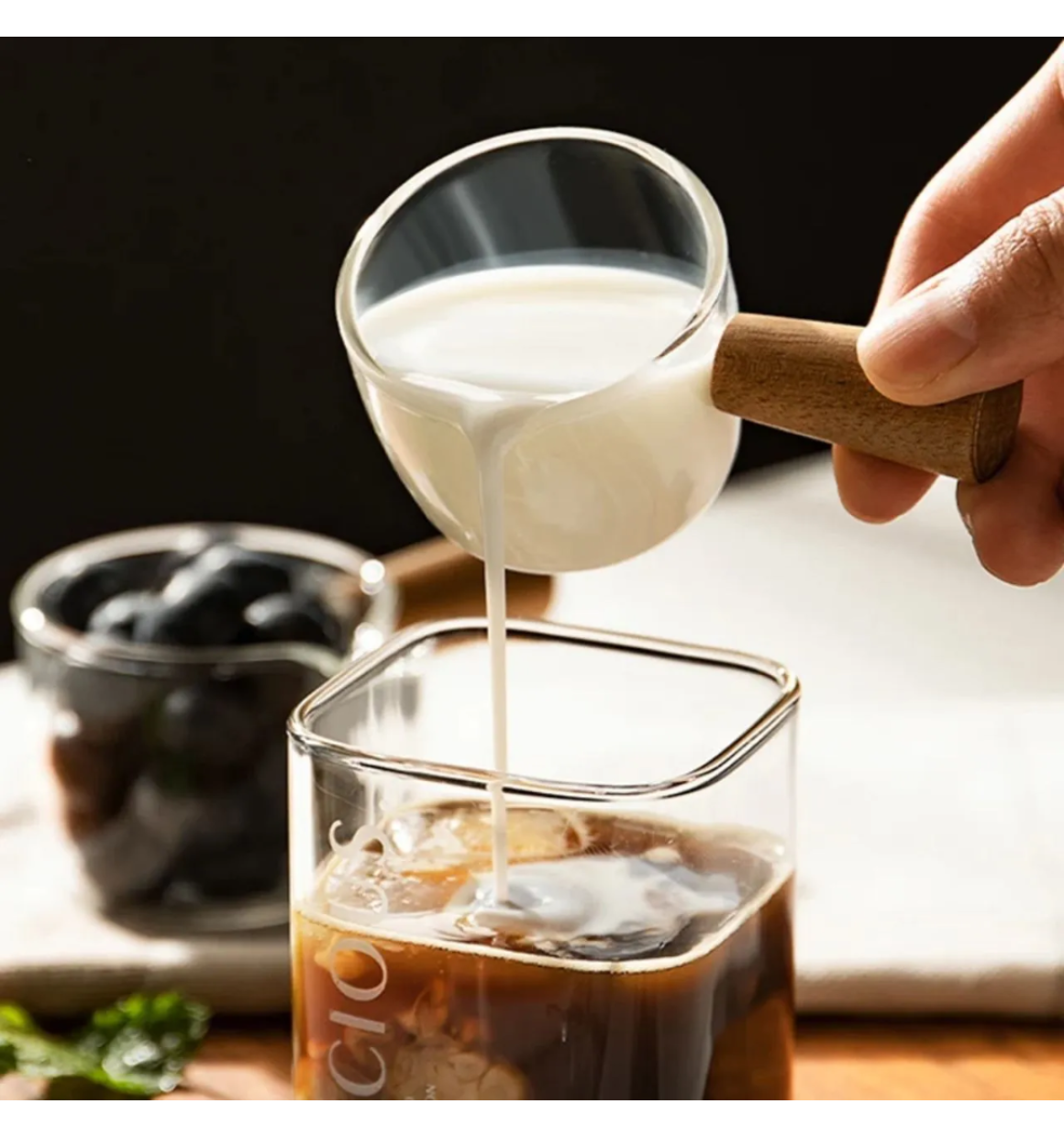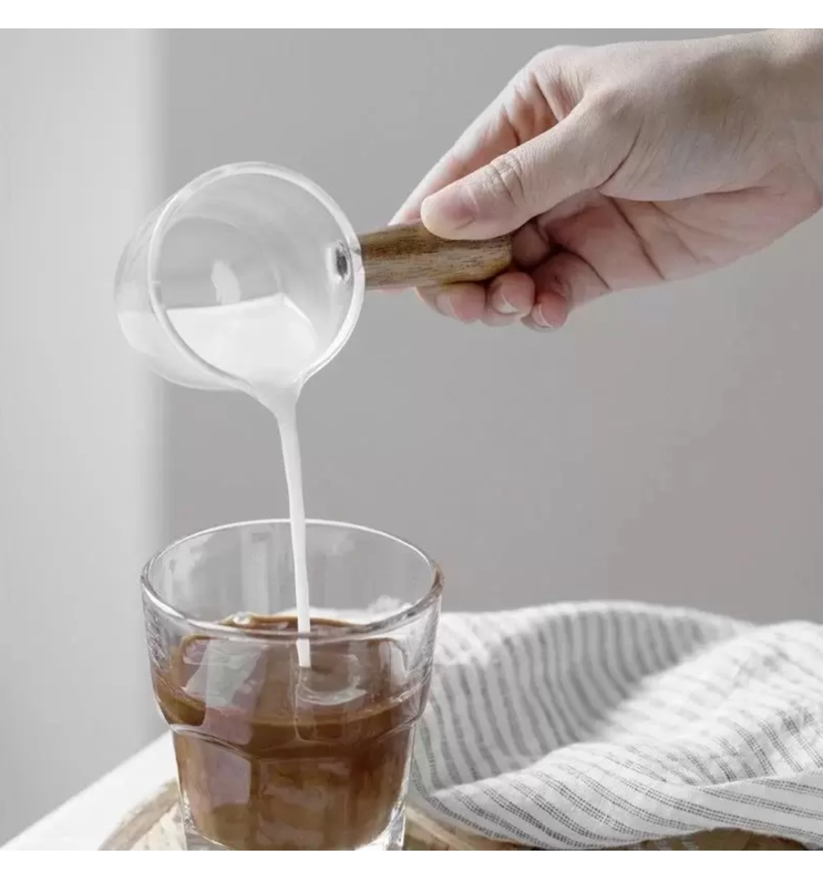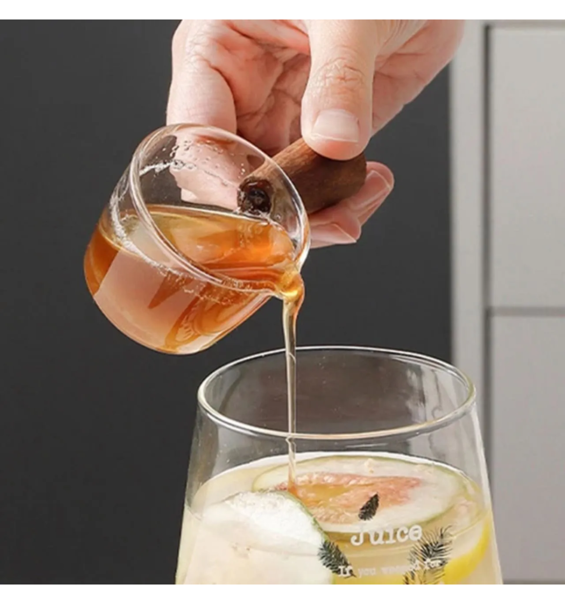 Esta molheira é feita de vidro transparente de alta qualidade, permitindo que você veja claramente o conteúdo dentro dela. O cabo de madeira adiciona um toque rústico e moderno, tornando-a uma peça versátil que se adapta a qualquer estilo de decoração. Também marca quantos ml tem aproximadamente.