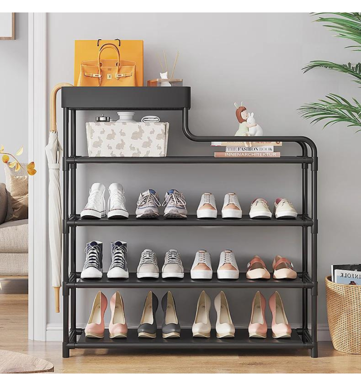 Apresentamos a Sapateira Prateleira 5 Andares Multiuso na cor preta, um item indispensável para manter a organização dos seus sapatos. Com uma estrutura robusta, feita de plástico, TNT e ferro, esta sapateira é projetada para durar e é muito facil de montar, proporcionando um local seguro e estável .