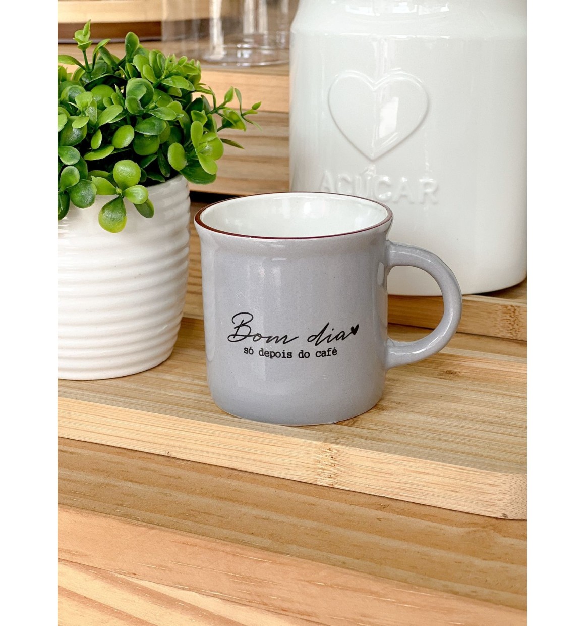 Caneca "Bom dia só depois do Café" Cinza 160ml Mod 6