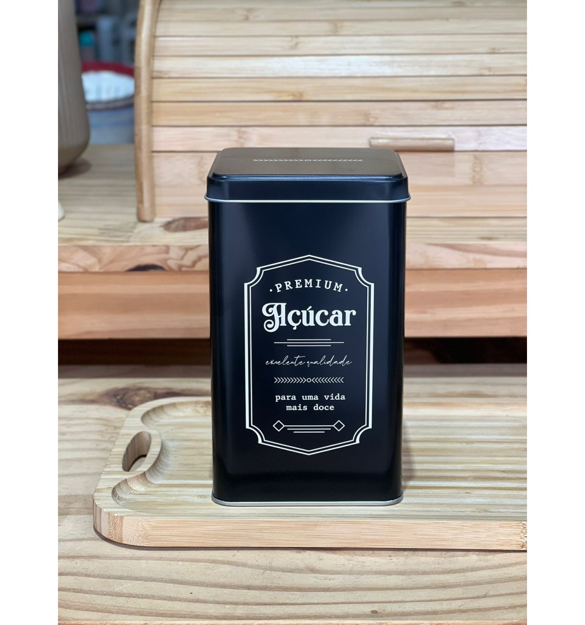 Lata de Açucar Retrô Preto 10,5x18,5cm