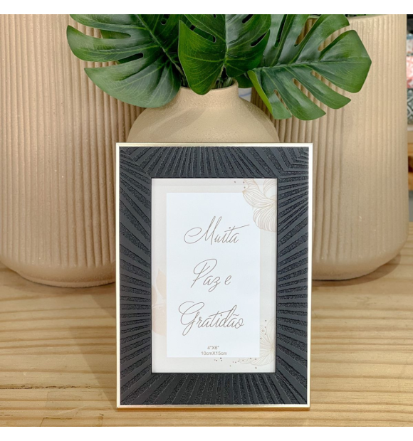 Traga uma atmosfera de serenidade para a sua casa com o Preto c/ Borda Dourada "Muita Paz e Gratidão".Ideal para fotos de 10cm X 15cm, é perfeito para exibir seus momentos favoritos em um ambiente tranquilo e acolhedor.