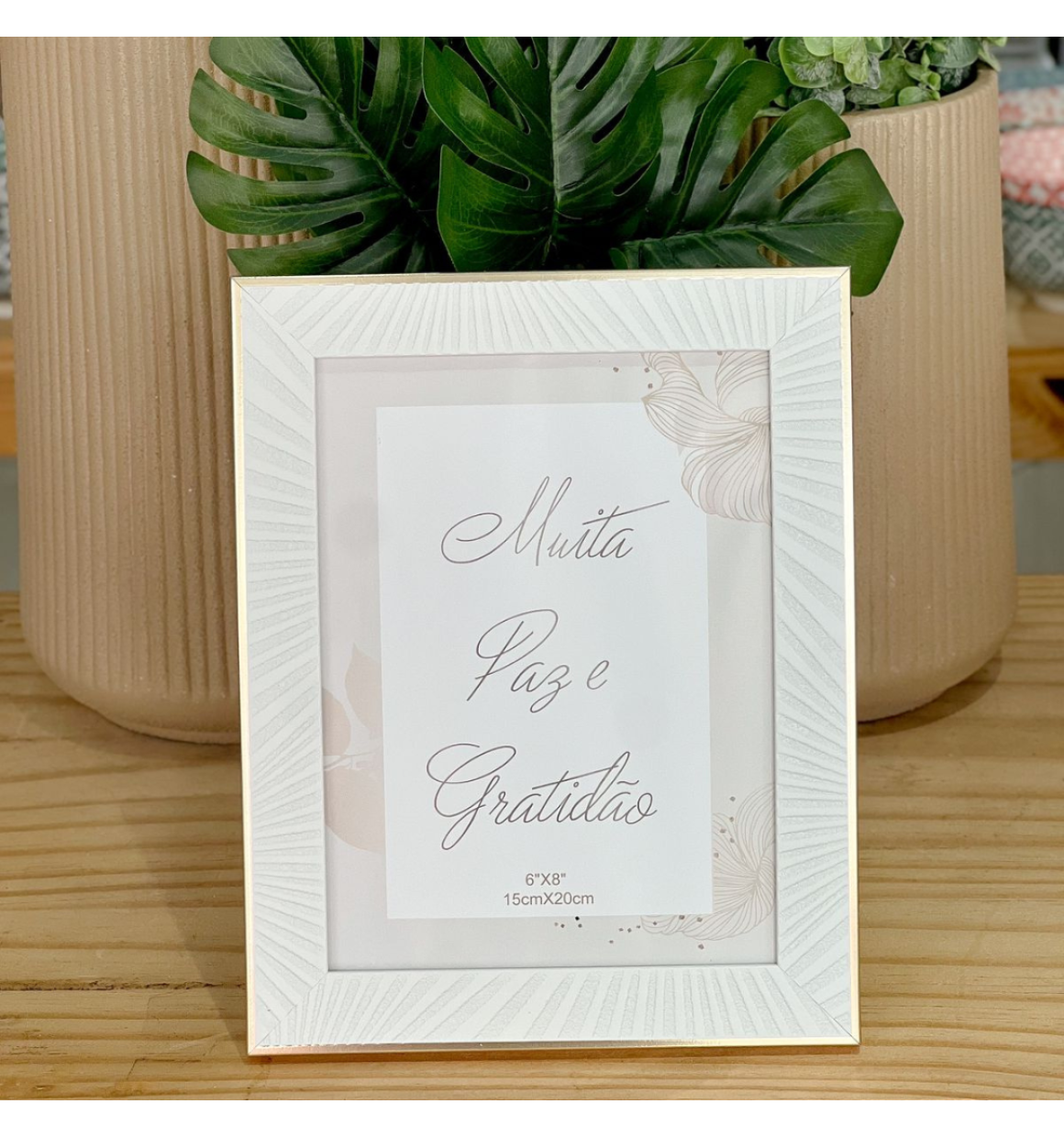 Porta Retrato Branco com Moldura Dourada "Muita Paz e Gratidão" 15cm X 20cm