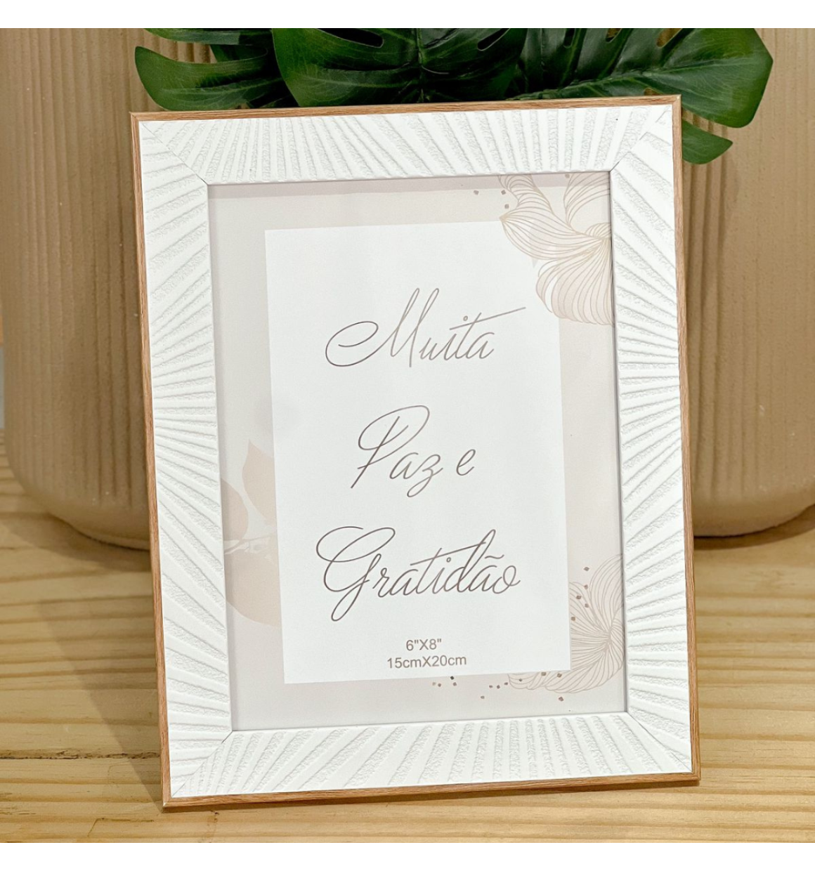 Porta Retrato Branco com Moldura Marrom "Muita Paz e Gratidão" 15cm X 20cm