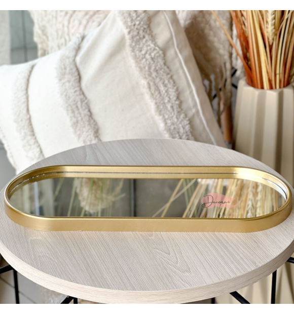 Bandeja Dourada Espelhada Oval