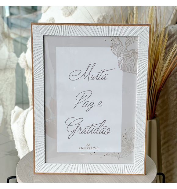 Porta Retrato Branco c/ Moldura Marrom "Muita , Paz e Gratidão" A4 - 21cm X 29.7cm