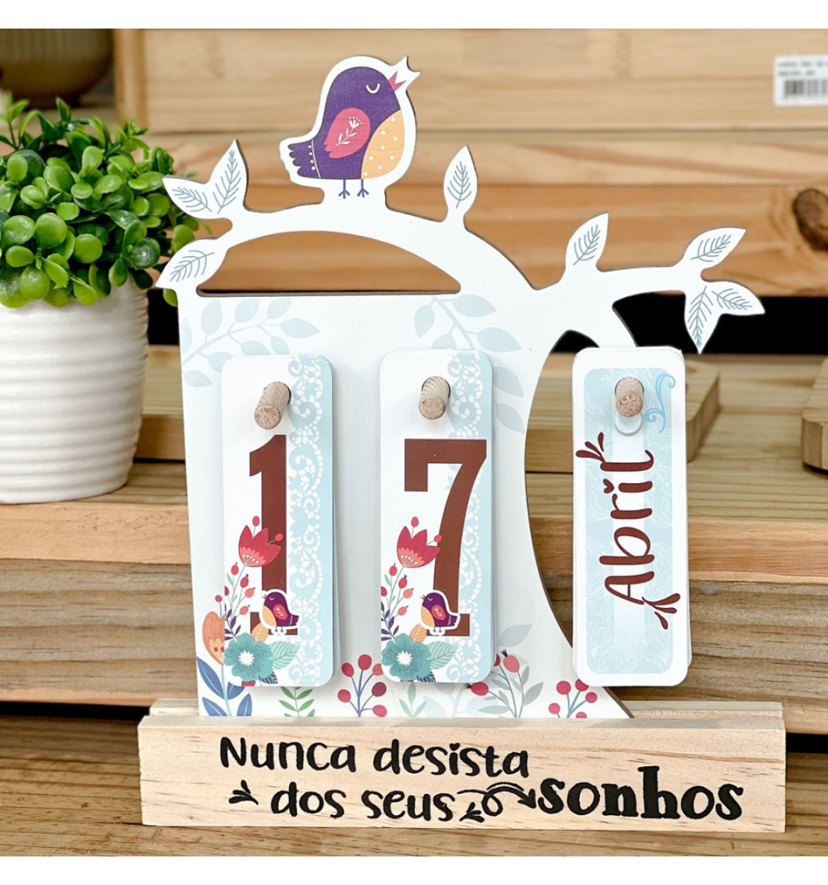 Calendário de Madeira "Nunca Desista dos Seus Sonhos"