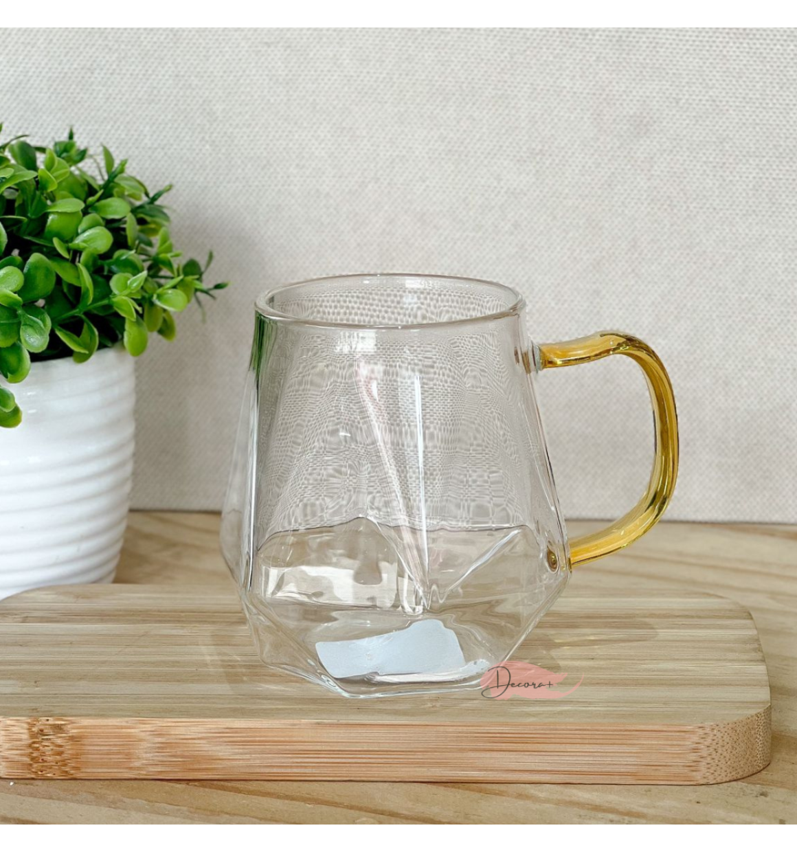 Caneca de Vidro Diamante 330ml c\ Alça Ambar