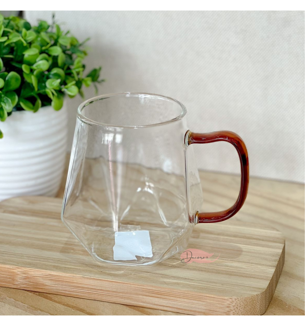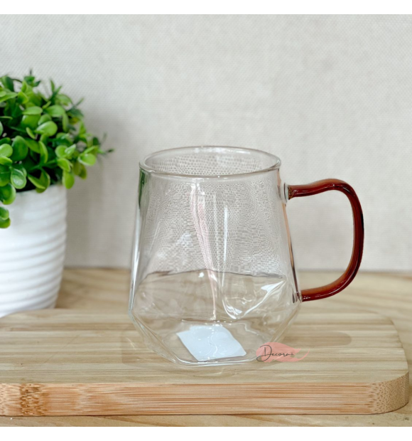 Caneca de Vidro Diamante 330ml c\ Alça Marrom