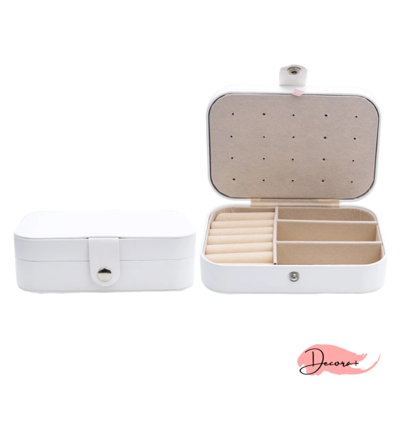 este porta joias elegante e compacto é perfeito para viagens ou uso diário. A cor branca clássica e a base de poliéster resistente garantem durabilidade e um toque de sofisticação. Ideal para anéis, brincos, colares e pulseiras, este porta joias combina praticidade e estilo em um só produto.