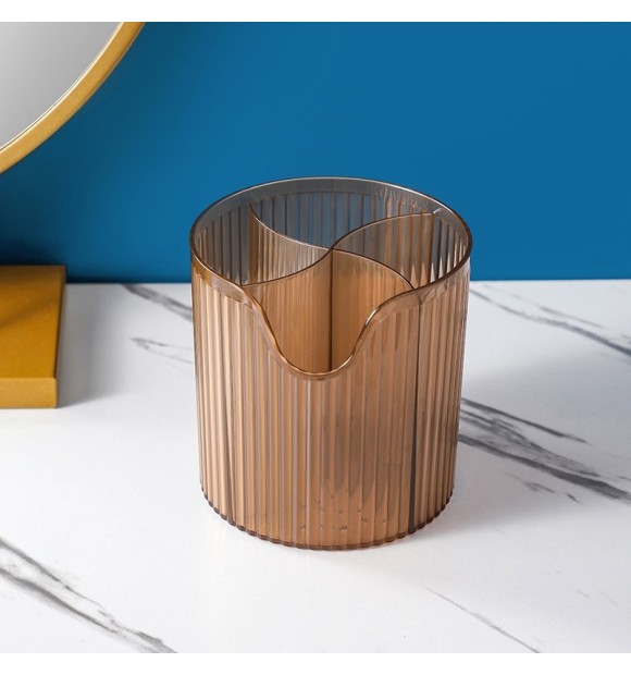 Design Redondo: Com formato redondo, esse organizador é perfeito para acomodar objetos de diversos tamanhos, como maquiagens, acessórios, material de escritório, entre outros.