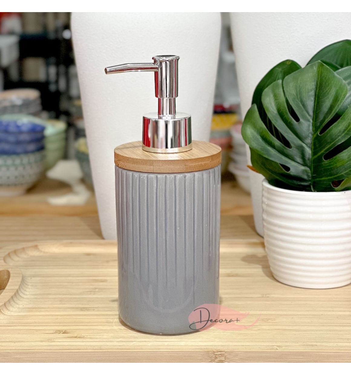 Porta Sabonete Liquido de Cerâmica Cinza 250ml - 7cm X 18cm