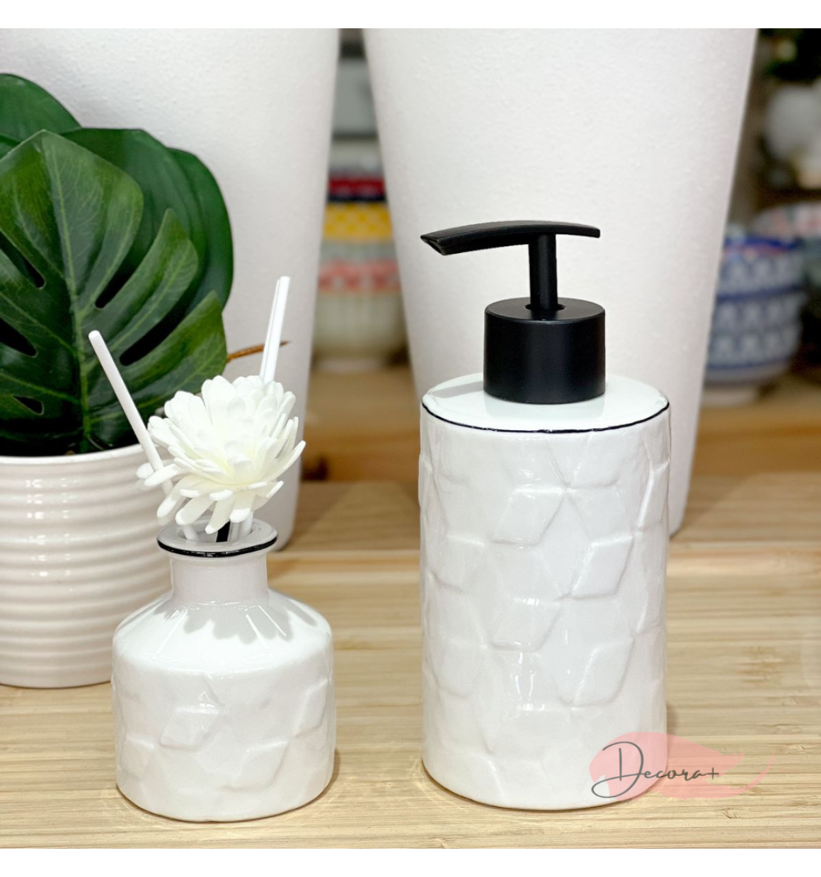 Kit de Banheiro com Difusor de Porcelana Branco - 2 Pcs