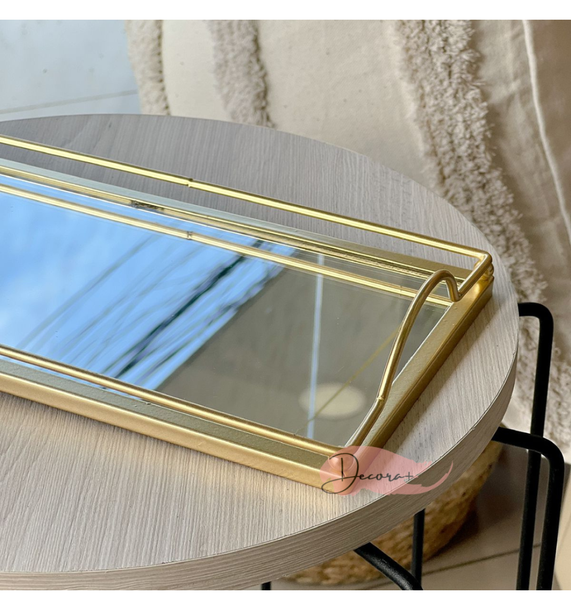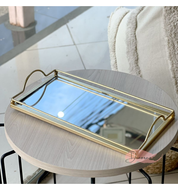esta bandeja retangular com alças é ideal para servir, organizar ou decorar. O acabamento dourado e o espelho refletem luz e elegância, tornando-a uma peça indispensável para qualquer ambiente sofisticado.