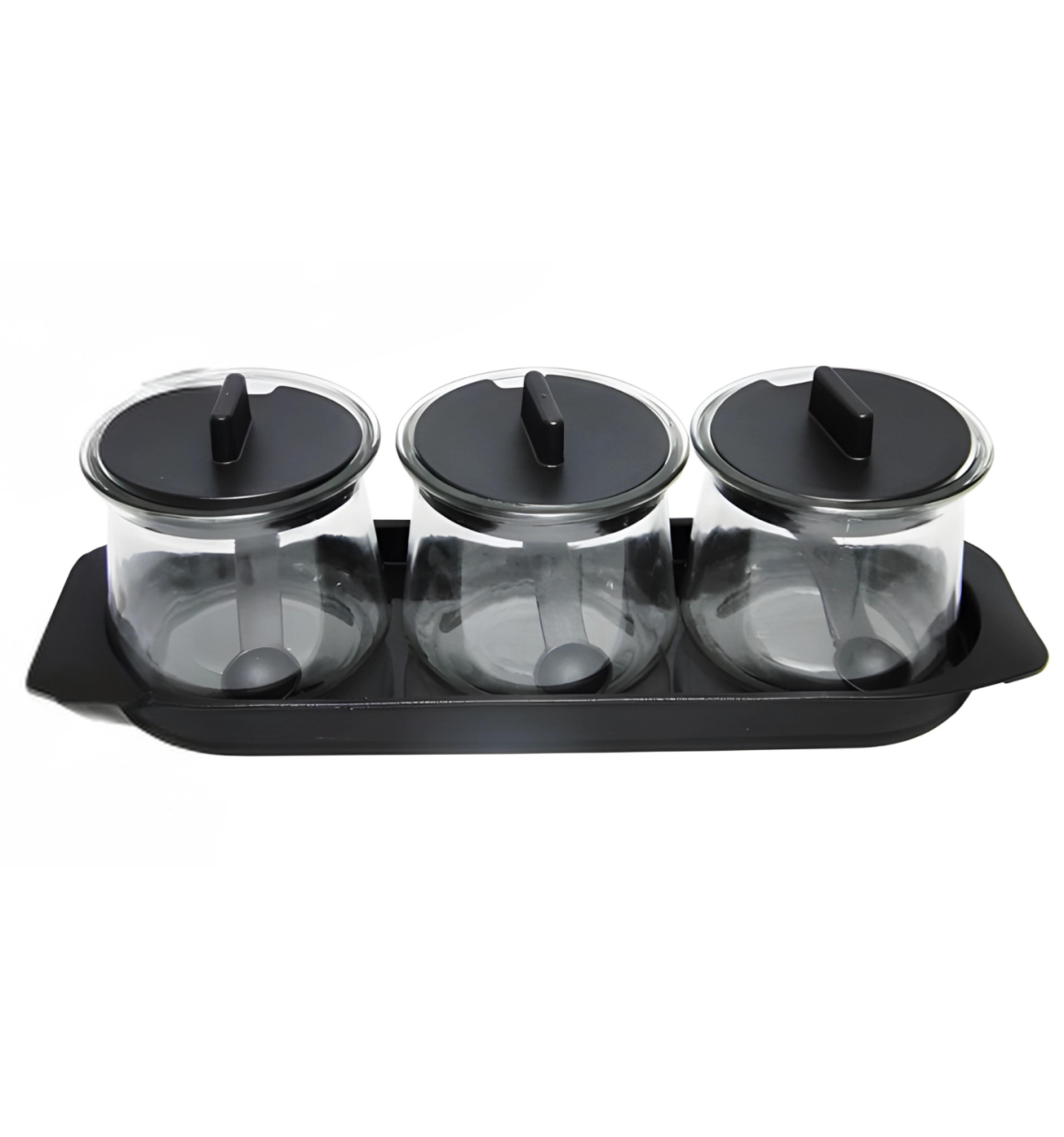 Este conjunto de 4 peças é perfeito para armazenar e organizar seus temperos de maneira eficiente. A bandeja facilita o transporte e a disposição dos potes, tornando o seu preparo de refeições ainda mais prático.