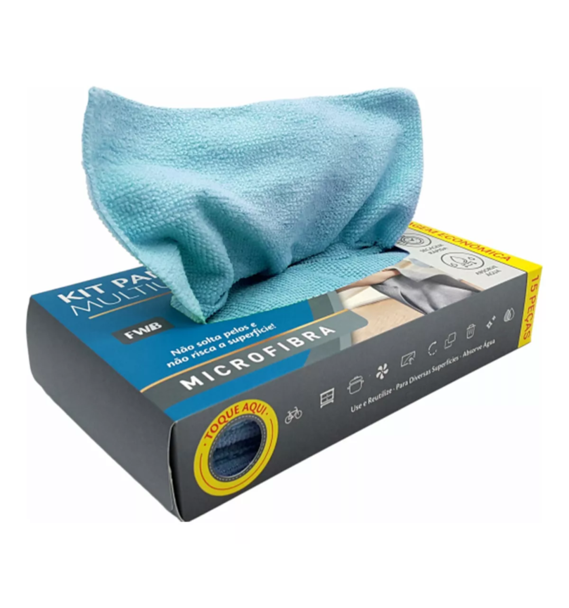 Facilite a limpeza da sua casa com o Kit Pano Multiuso! Com 15 peças de microfibra de alta qualidade, estes panos são perfeitos para diversas superfícies, absorvem água rapidamente, não soltam pelos e não riscam. Além disso, têm secagem rápida, garantindo praticidade no seu dia a dia.