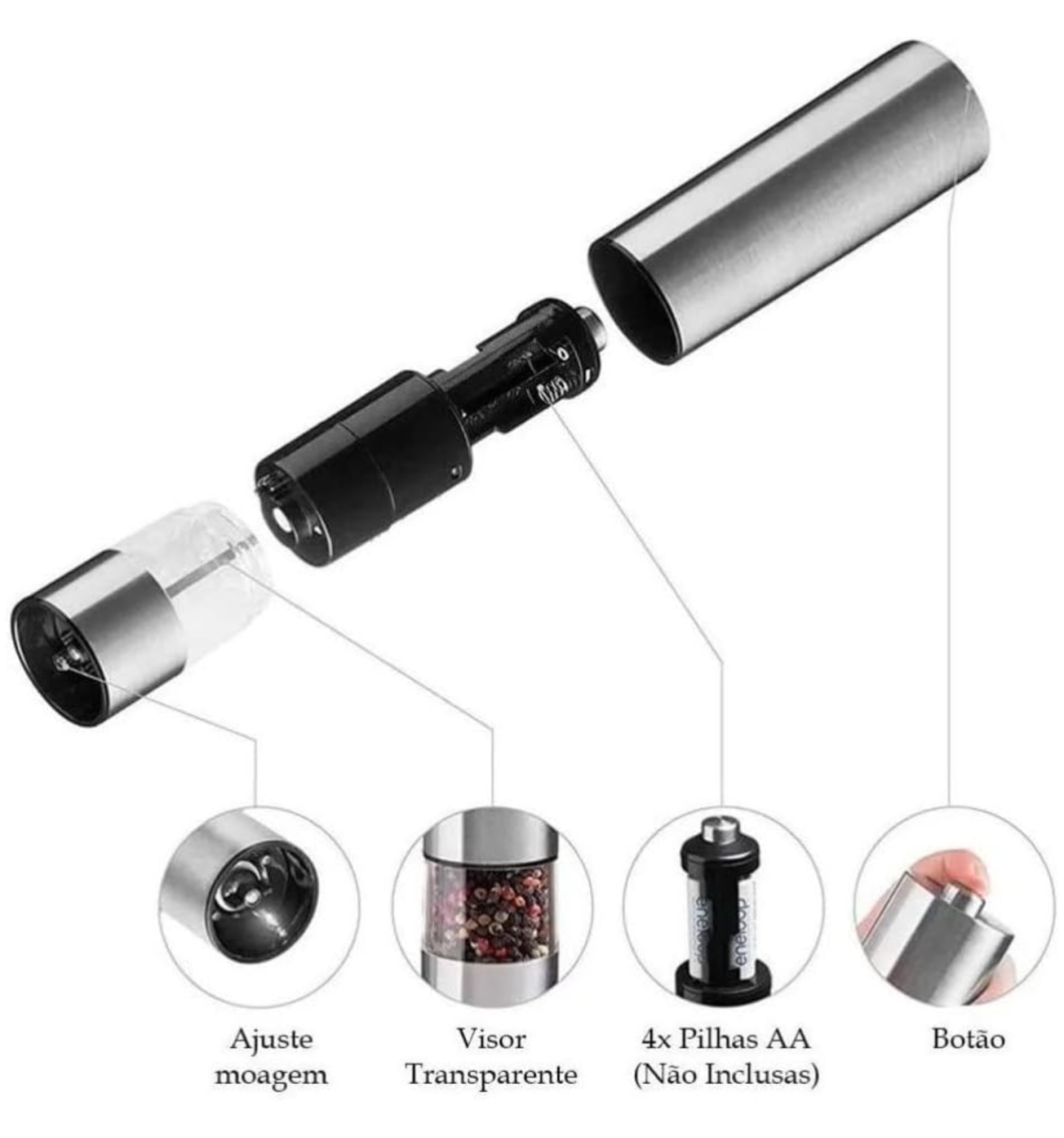 Moedor de Temperos Eletrico em Inox - 23cm X 5cm