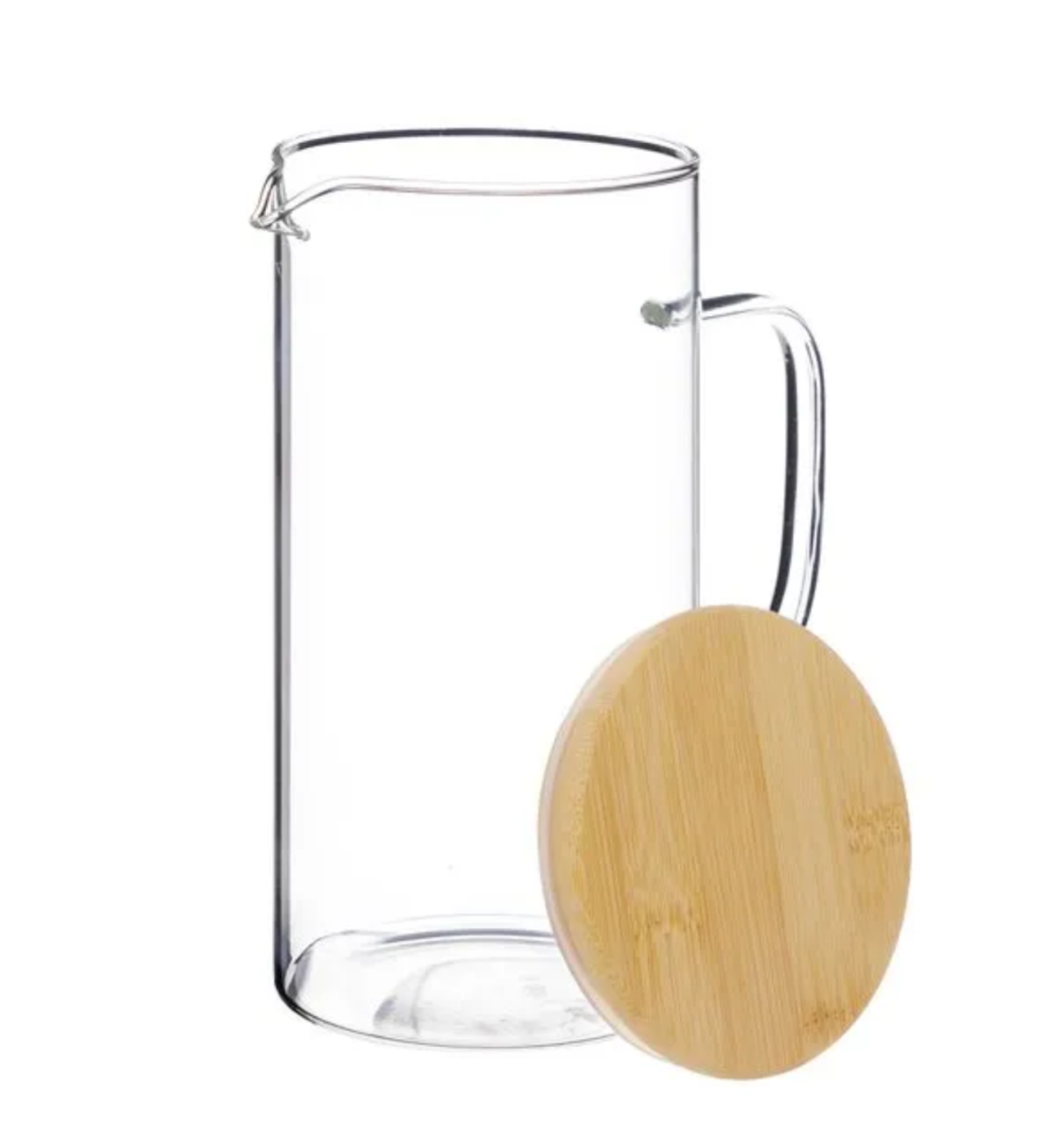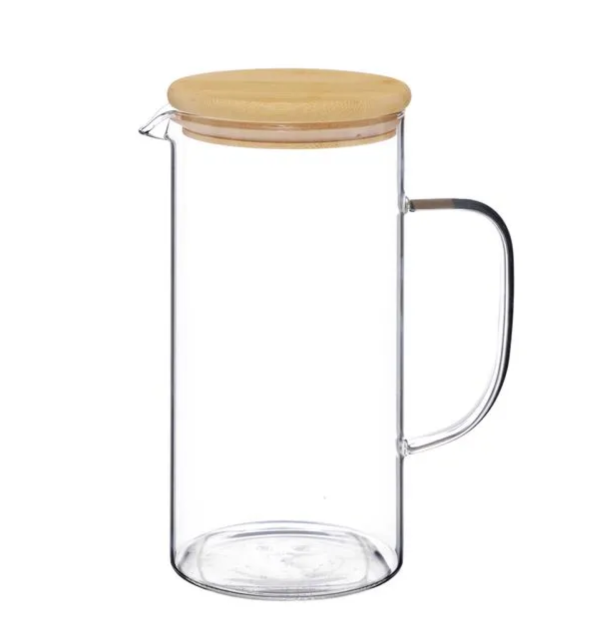 Com uma capacidade de 1350ml, esta jarra é perfeita para suas bebidas favoritas, desde água aromatizada até sucos frescos. A tampa de bambu adiciona um toque natural e sofisticado, mantendo suas bebidas frescas e protegidas. Um item indispensável para qualquer cozinha moderna.