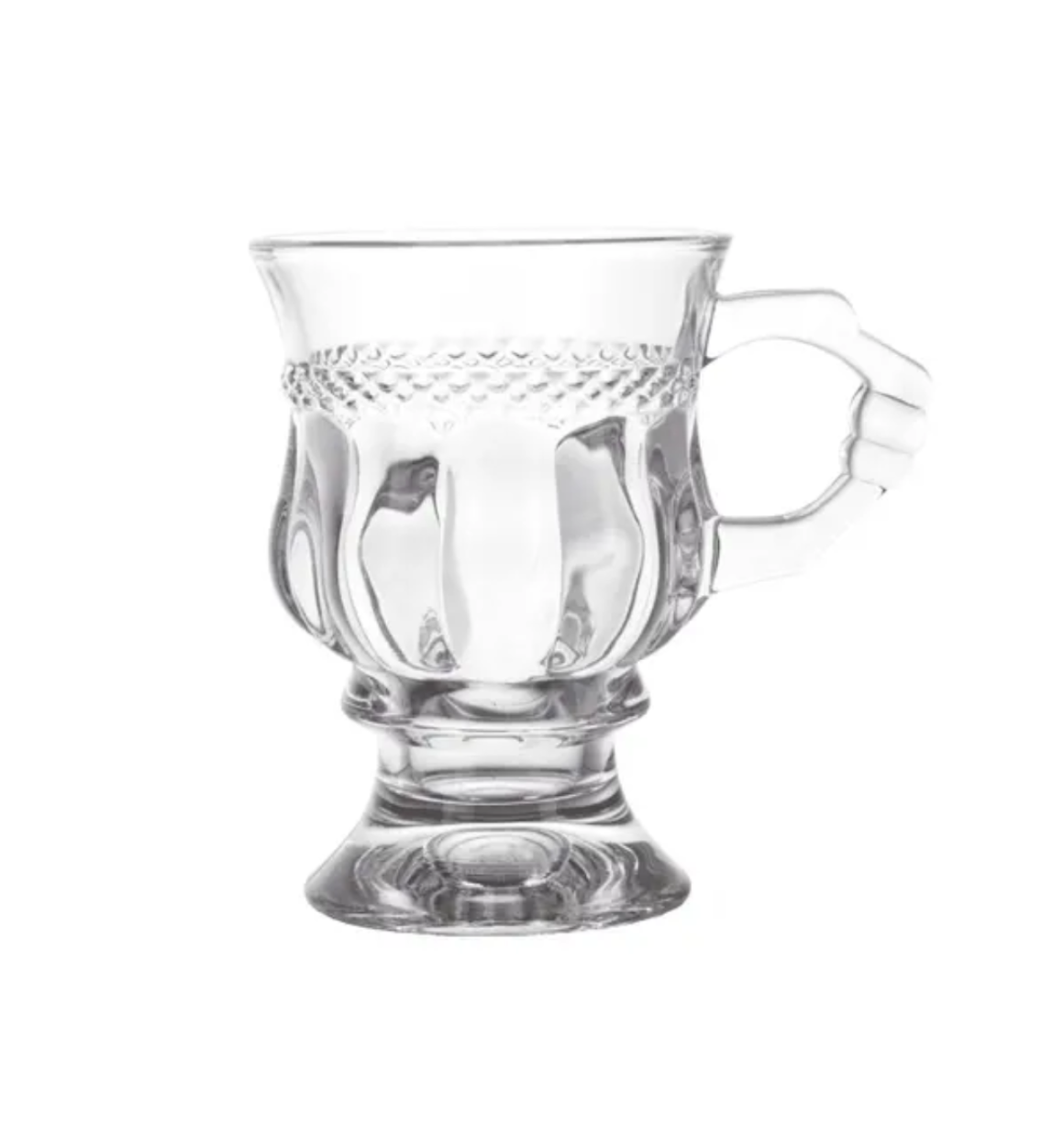 Seu design sofisticado e o relevo detalhado adicionam um toque especial ao seu  café. Feita de vidro durável, esta caneca é perfeita para quem busca estilo e qualidade, enquanto sua capacidade de 117ml é perfeita para um shot perfeito de café.