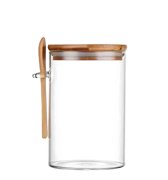Pote de Vidro com Tampa e Colher de Bambu - 550ml