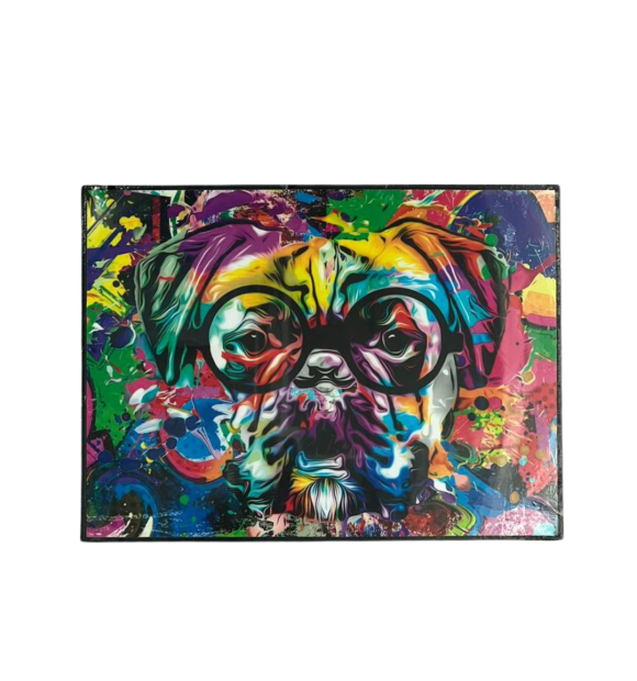 Traga vida e alegria ao seu ambiente com este vibrante quadro de cachorro colorido. Feito em acetato e MDF, com dimensões de 29cm x 39cm x 1,8cm, ele é perfeito para dar um toque de diversão e criatividade à sua decoração. Ideal para salas, quartos e escritórios.