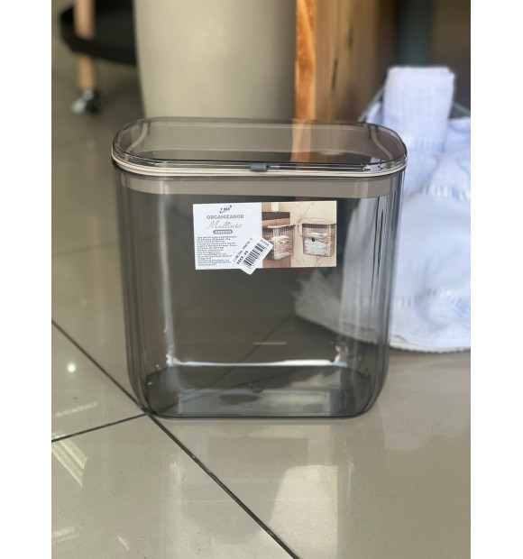 Lixeira de Acrilico c/ Tampa e Adesivo Fumê - 25.5cm X 14cm X 25.5cm