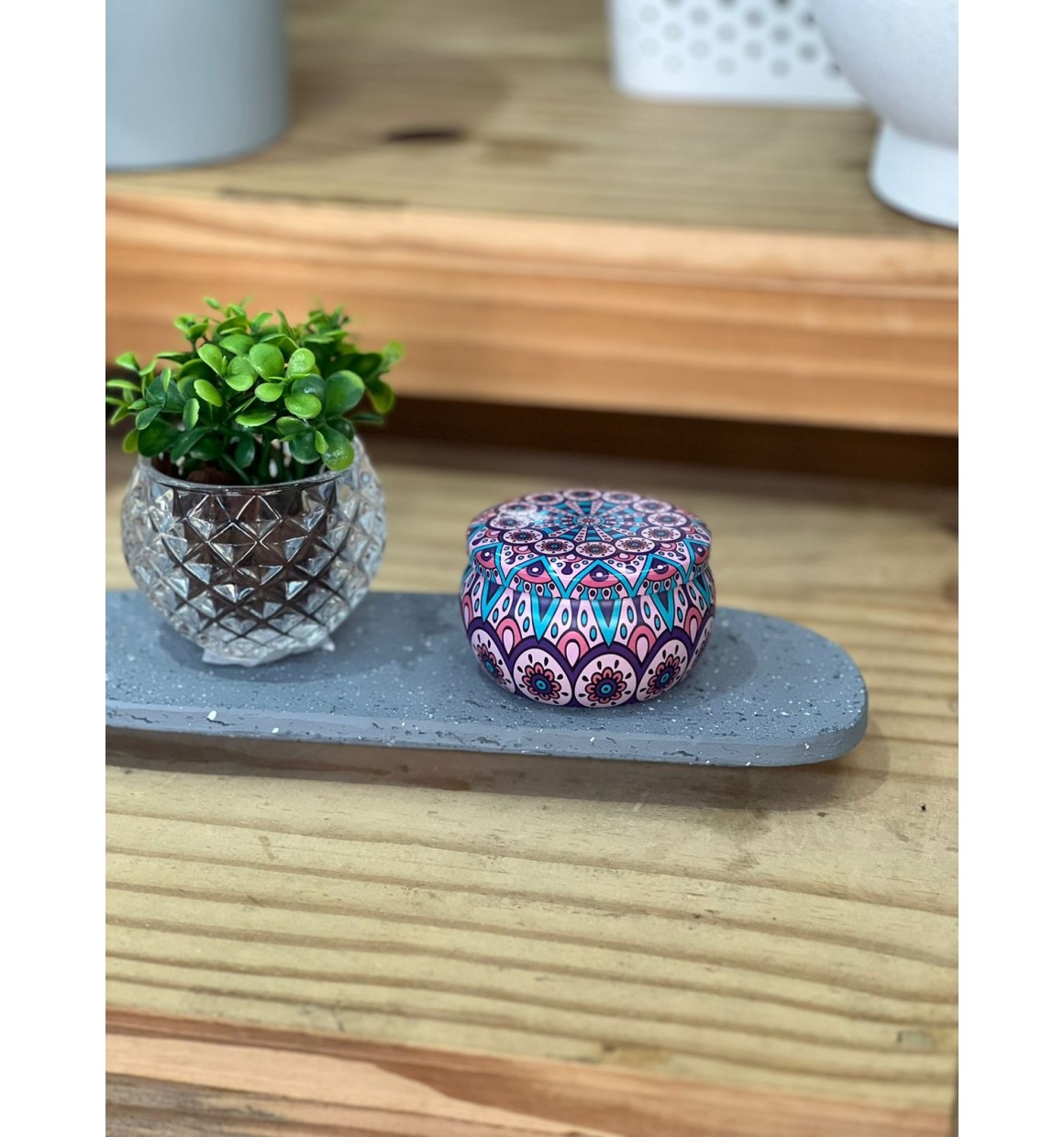 O frasco de metal com estampa Mandala é um charme à parte , enquanto a fragrância agradável cria um clima relaxante.ela é tanto um item decorativo quanto funcional. Medindo 5cm X 7cm, é ideal para qualquer espaço.