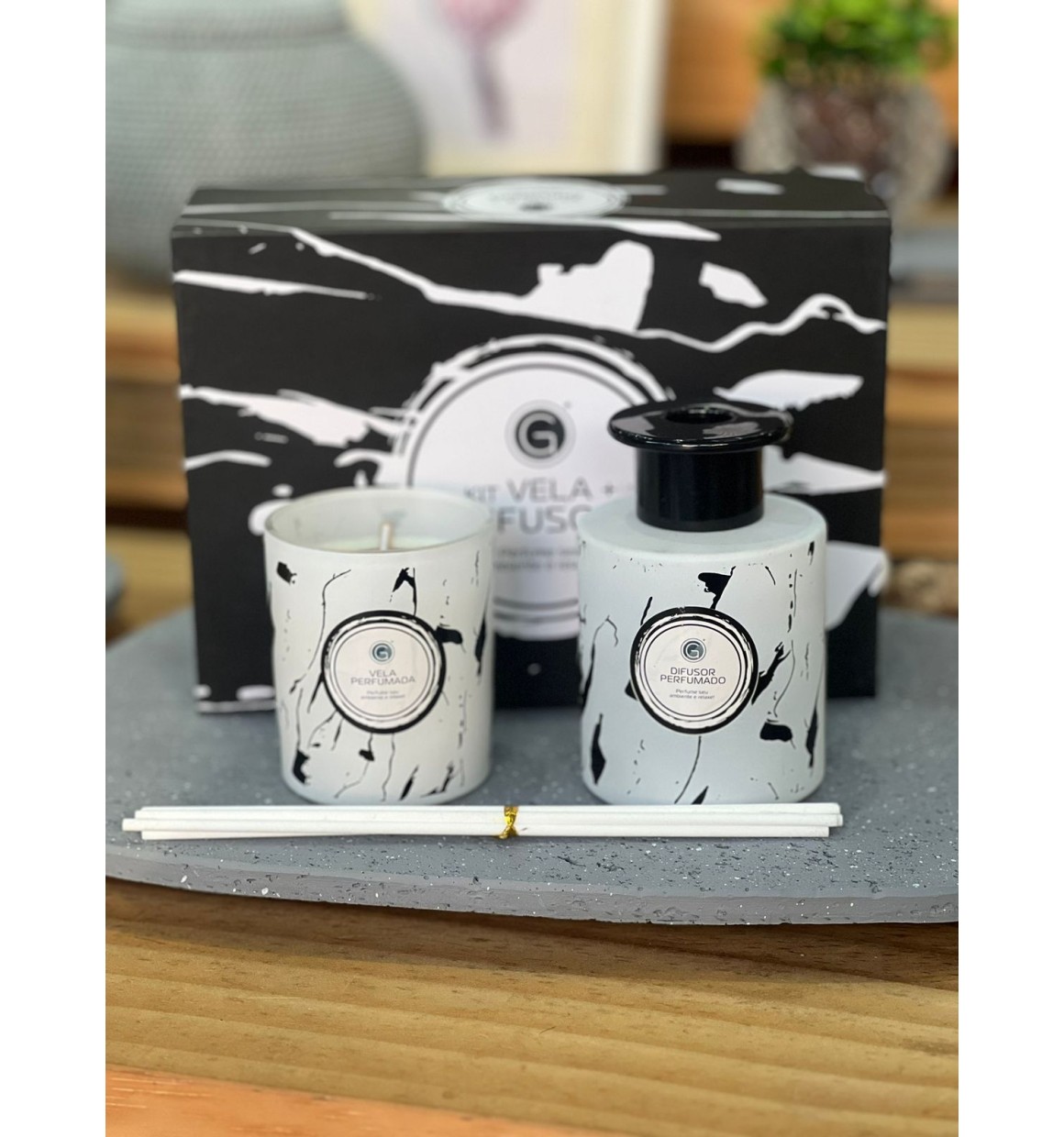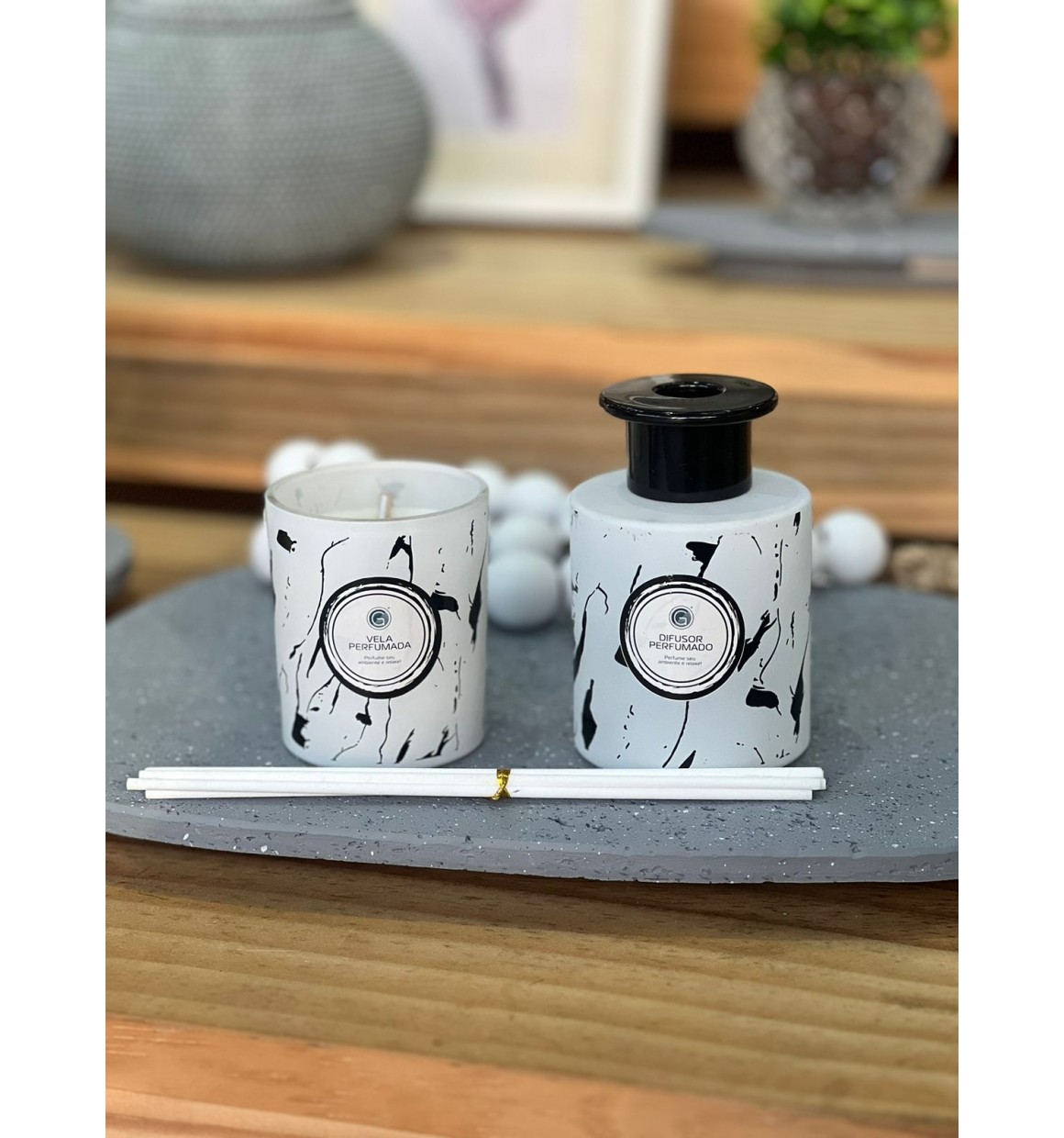Kit Vela Branca e Difusor de Ambientes Branco - 2 Peças 120ml